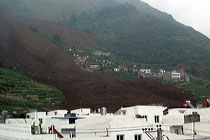 7月27日凌晨5時(shí)許,因連日來(lái)的持續(xù)強(qiáng)降雨和暴晴天氣,四川雅安市漢源縣萬(wàn)工鄉(xiāng)雙合村一組萬(wàn)工集鎮(zhèn)后背山(小地名二蠻山)突發(fā)滑坡,方量約10萬(wàn)方,造成萬(wàn)工集鎮(zhèn)、雙合一組部分村民房屋垮塌。初步核實(shí)共有58戶房屋受損、21人失蹤。初步勘明強(qiáng)降雨形成的新滑坡推移引發(fā)泥石流,方量約10萬(wàn)方。由于垮滑現(xiàn)場(chǎng)實(shí)施救援較為危險(xiǎn),滑坡暫時(shí)被房屋擋住,隨時(shí)可能推到房屋再次下滑,救援人員已經(jīng)全部撤離。災(zāi)害發(fā)生后,當(dāng)?shù)匮杆僬{(diào)集武警、消防等98人趕赴現(xiàn)場(chǎng)救援,還有230人待命。目前,帳篷、食品、飲用水等救災(zāi)物資已陸續(xù)運(yùn)往臨時(shí)安置點(diǎn),尚未發(fā)現(xiàn)新增失蹤人員。圖為山體垮滑現(xiàn)場(chǎng)。中新社發(fā) 孫浩 攝