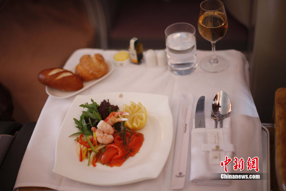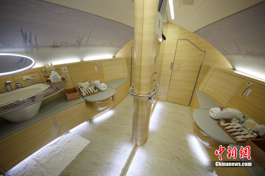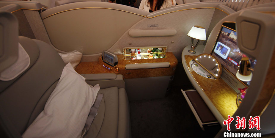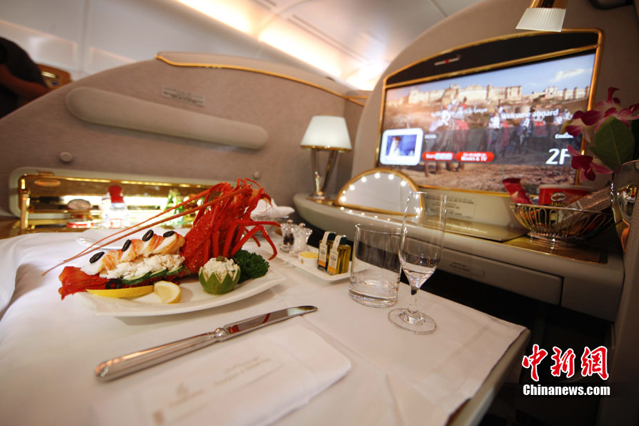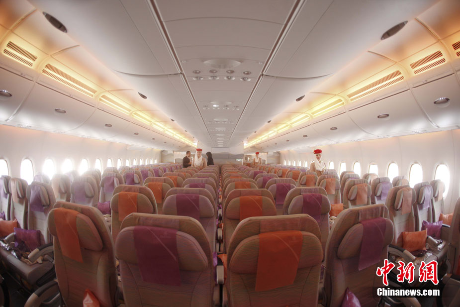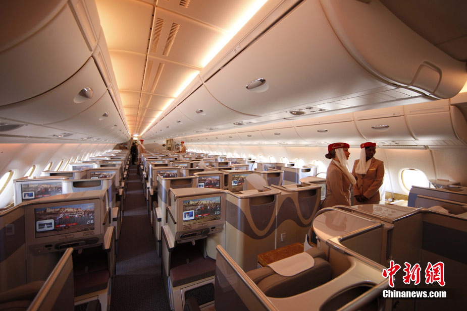 阿航A380 客機頭等艙內(nèi)共有14個私人套間,設有兩間設備齊全的淋浴房,帶按摩功能的座椅可平躺成床。頭等艙和商務艙乘客還能享受如私人會所般、提供冷熱小點和酒品飲料的機上酒廊社交區(qū)。商務艙的座椅可放平成2米長的床,而經(jīng)濟艙的座椅可以傾斜多達33英寸,讓乘客自由舒展身體。所有艙位的乘客都可以享用阿航多達1200個頻道的數(shù)碼寬屏機上娛樂系統(tǒng),該系統(tǒng)提供空中娛樂節(jié)目。圖為阿聯(lián)酋航空空客A380上的空姐。中新社記者 盛佳鵬 攝