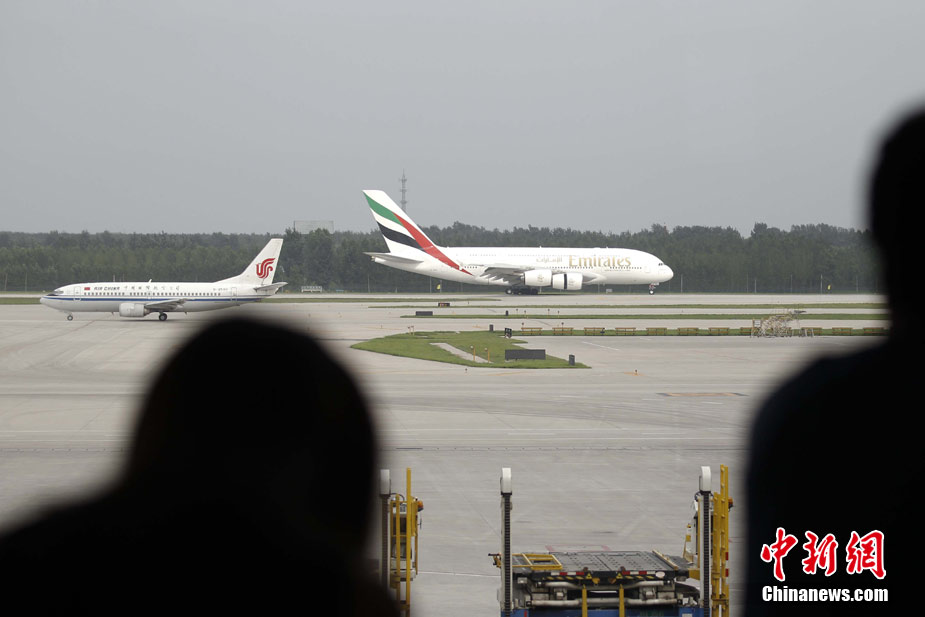 8月1日,阿聯(lián)酋航空公司A380飛機降落在北京首都機場,這是世界上最大客機A380執(zhí)行的首條定期飛北京的航線?湛虯380是世界上最環(huán)保的商業(yè)客機,它的合成材料、輕身原料和加固構架使其每座位燃油消耗比其他同類型飛機低20%以上。