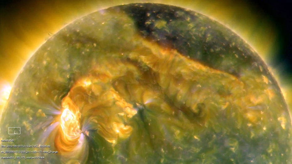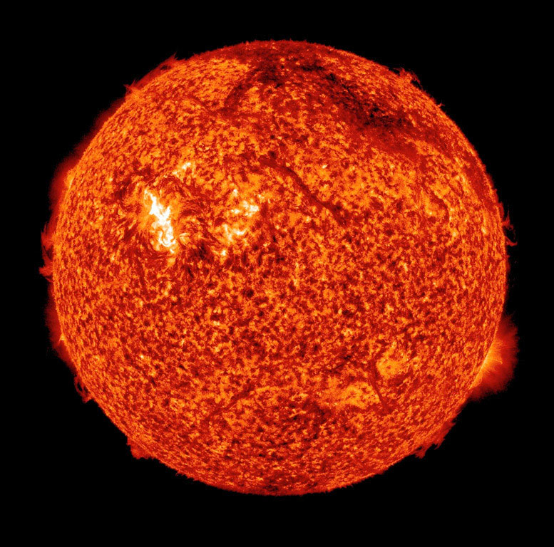 據(jù)英國(guó)媒體2日?qǐng)?bào)道,各國(guó)天文臺(tái)近日觀測(cè)到太陽(yáng)表面發(fā)生劇烈的太陽(yáng)風(fēng)暴,科學(xué)家預(yù)測(cè),攜帶大量帶電粒子的太陽(yáng)風(fēng)預(yù)計(jì)于4日抵達(dá)地球,在兩極產(chǎn)生強(qiáng)烈的極光現(xiàn)象。圖為8月3日,NASA公布了太陽(yáng)動(dòng)力學(xué)觀測(cè)衛(wèi)星(SDO)1日通過(guò)極紫外線相機(jī)拍攝到的太陽(yáng)北半球耀斑爆發(fā),耀斑下的太陽(yáng)黑子足有地球大小。(NASA圖)