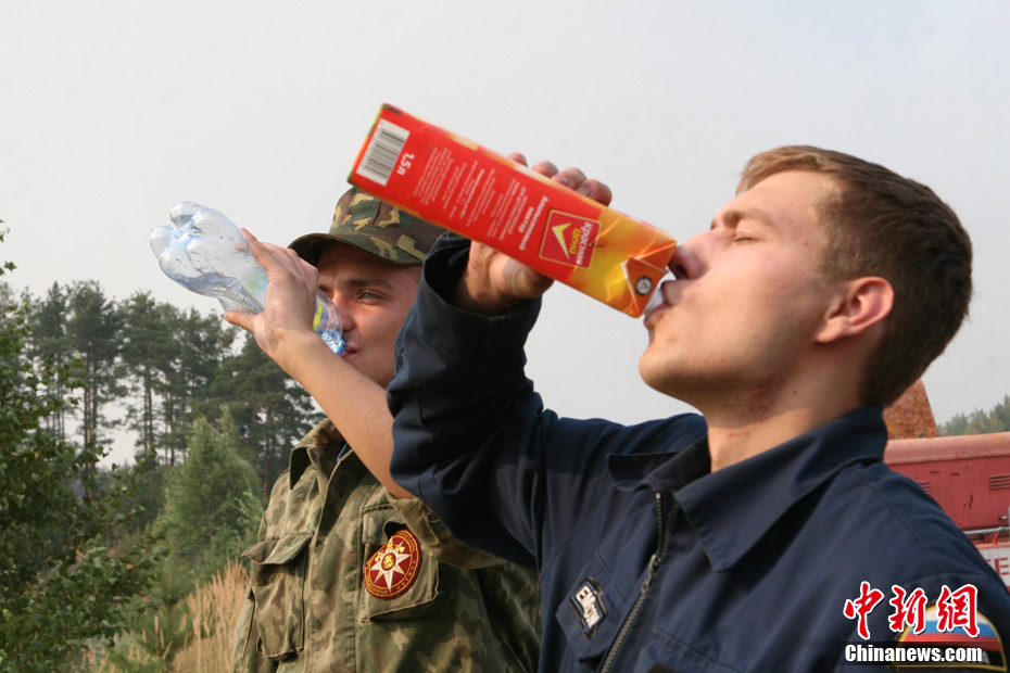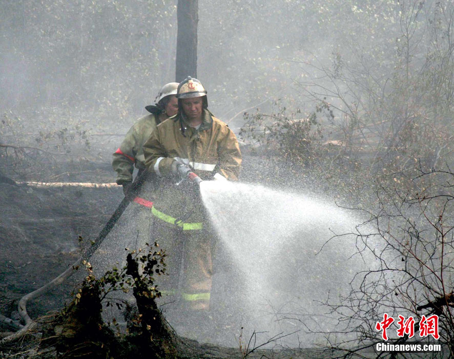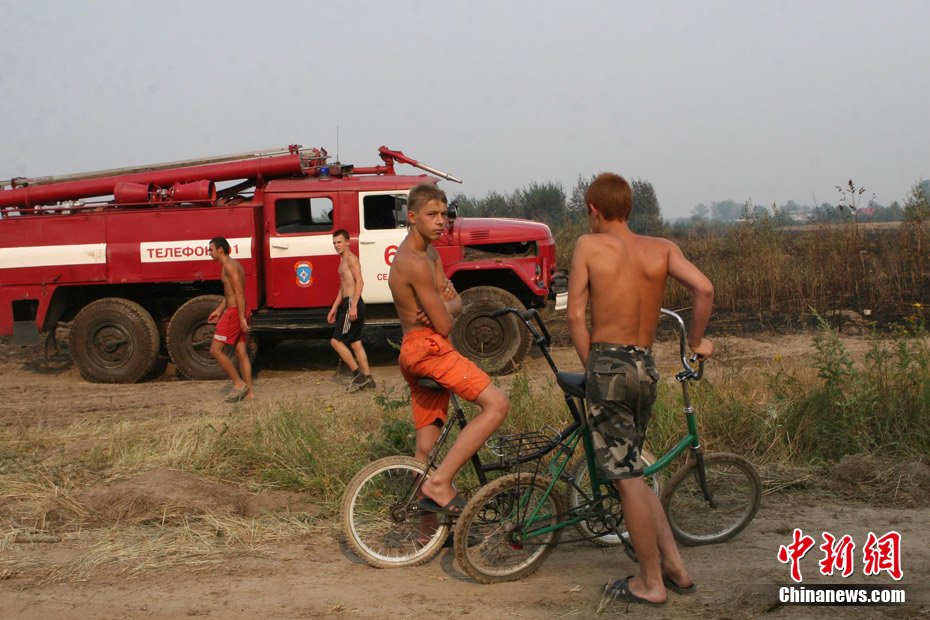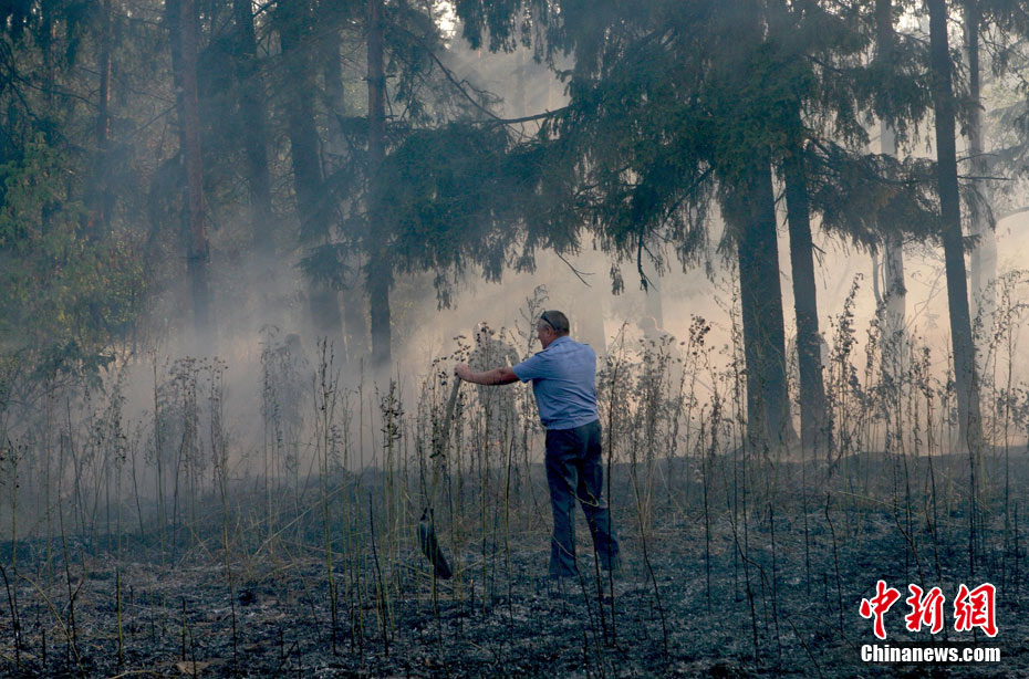 8月5日,在距離莫斯科市區(qū)僅15公里處的一家加油站附近突然燃起森林大火,情勢(shì)非常危急。當(dāng)?shù)孛癖娮园l(fā)與消防人員全力滅火。中新社發(fā) 田冰 攝