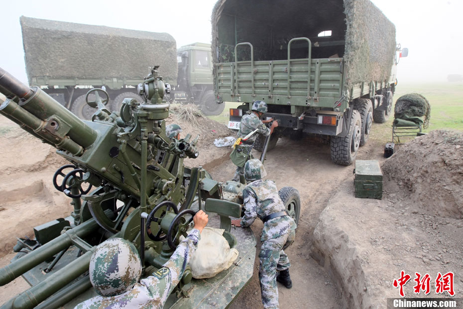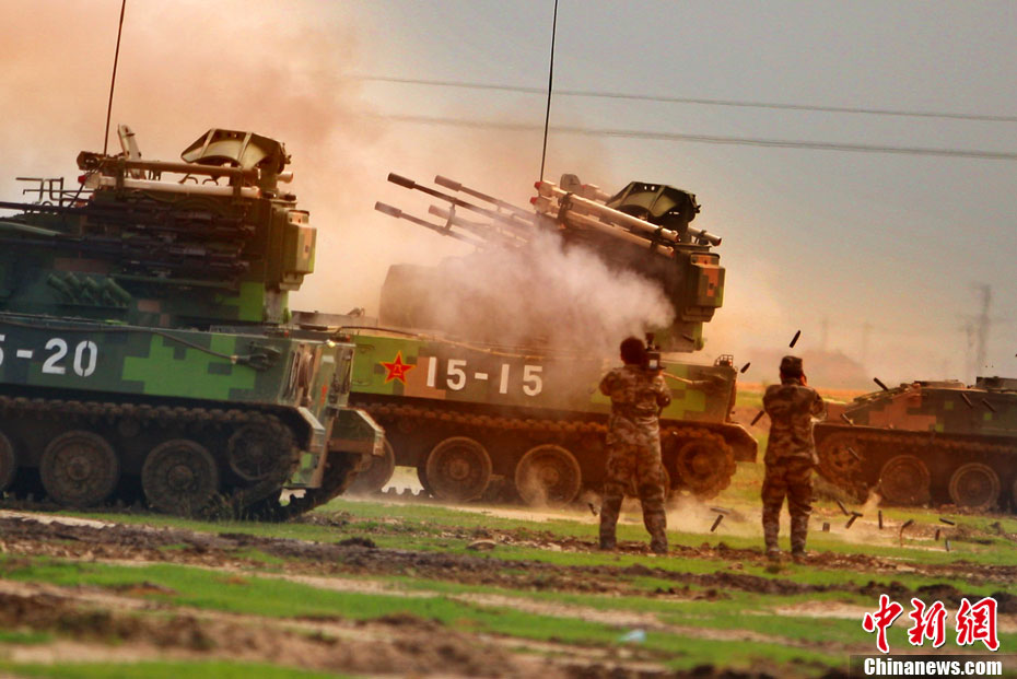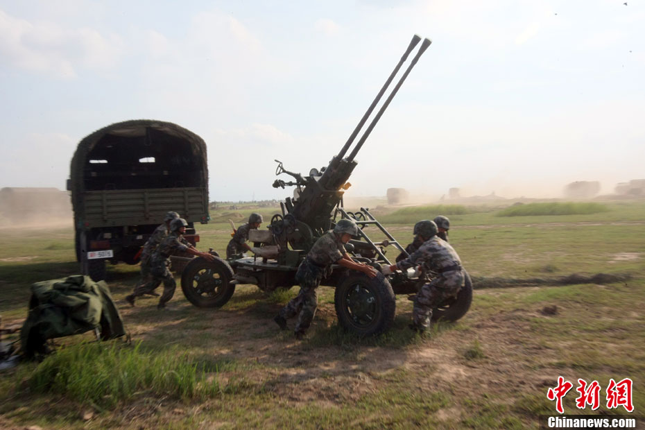 濟(jì)南戰(zhàn)區(qū)“前衛(wèi)--2010”防空部隊(duì)單元合成演練,8月7日進(jìn)入實(shí)兵實(shí)彈地空對抗最后階段。 中新社發(fā) 賈愚 攝