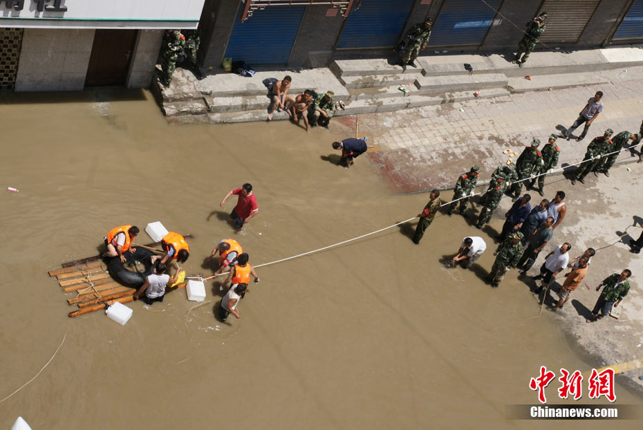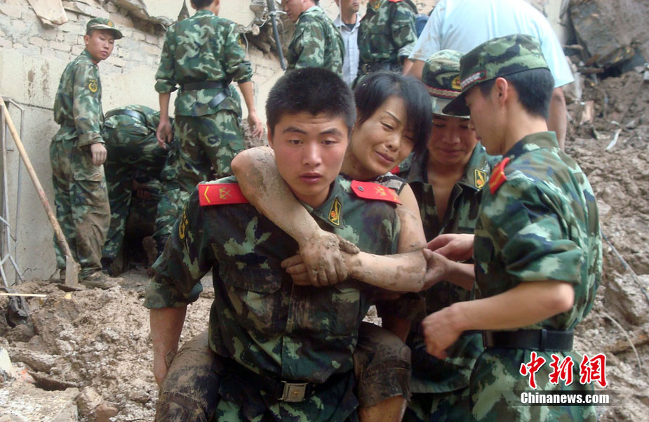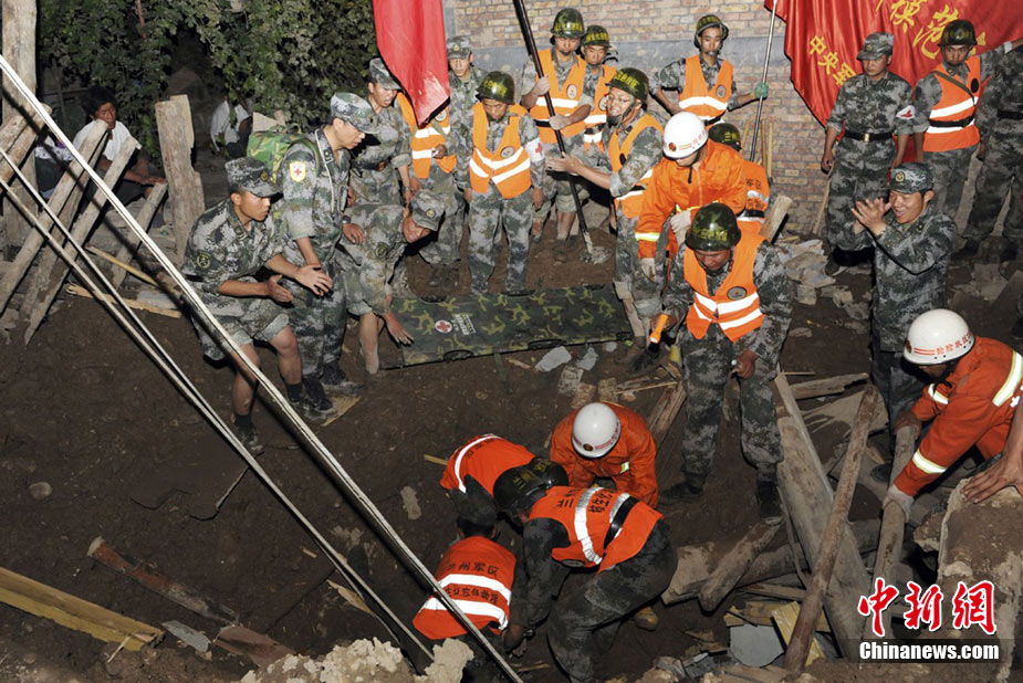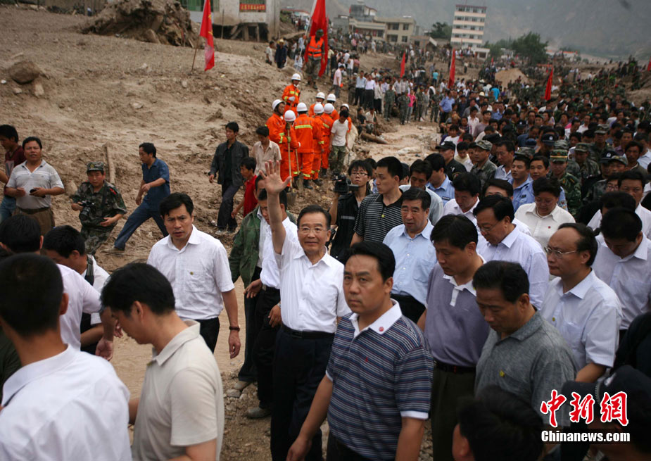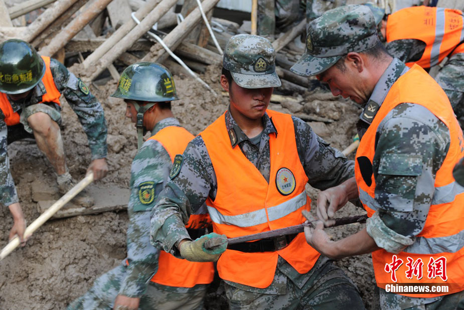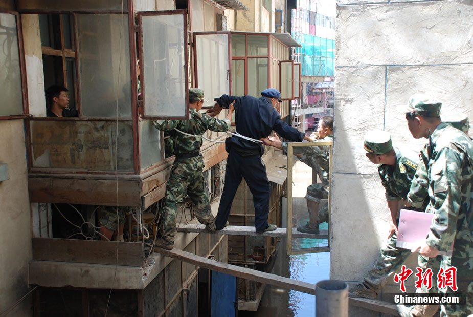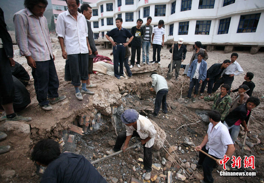 8月8日下午17時(shí)58分,白龍江水位有所下降。8月8日凌晨,甘肅省舟曲縣因強(qiáng)降雨引發(fā)滑坡泥石流,造成重大人員傷亡,電力、交通、通訊中斷。8月7日22時(shí)許,甘肅甘南州舟曲縣出現(xiàn)持續(xù)強(qiáng)降雨天氣,暴雨造成舟曲水文站下游100米處的羅家溝發(fā)生泥石流,堵塞白龍江,舟曲縣城部分被淹。中新社發(fā) 張永進(jìn) 攝