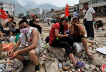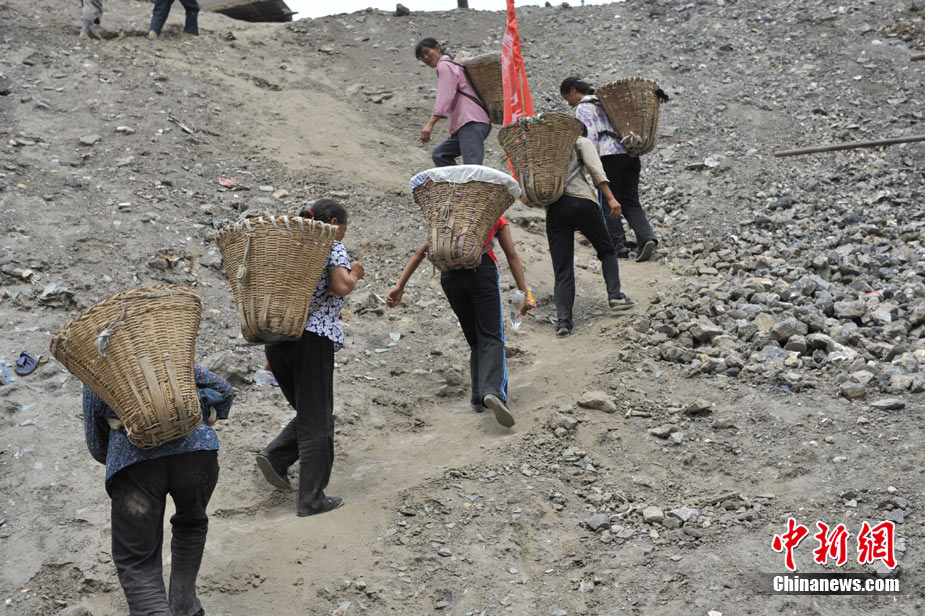 從早上8點(diǎn)到12點(diǎn),一上午這支“突擊隊(duì)”來(lái)回四趟,天氣炎熱,雖然對(duì)地形非常熟悉,她們休息的次數(shù)越來(lái)越多,步子也慢了起來(lái)。休息間歇,記者問(wèn)起,這次清運(yùn)垃圾政府會(huì)不會(huì)給些工資,大家都笑而不語(yǔ)。“給不給錢(qián)無(wú)所謂,發(fā)生這么大的事情,幫點(diǎn)忙也是應(yīng)該的。”嚴(yán)鄺條對(duì)記者說(shuō)。