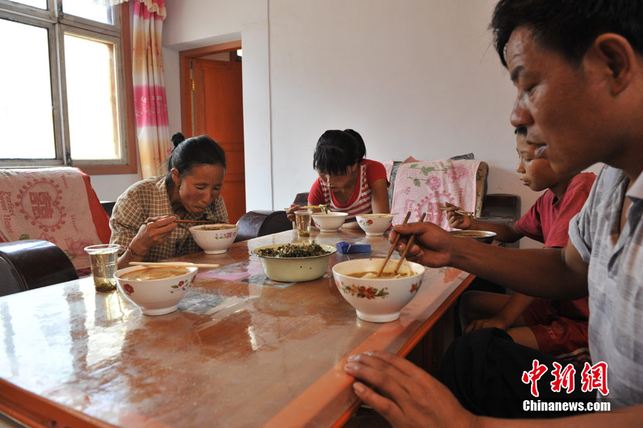 到了午飯時(shí)間,“突擊隊(duì)”隊(duì)員們盛情邀請(qǐng)記者去家里吃飯!拔医o你們做酸菜面!眲⒚废揉l(xiāng)音濃重,還需要經(jīng)過(guò)“翻譯”,記者才能聽(tīng)懂她的話。劉梅先對(duì)“北京來(lái)的記者”頗為好奇,說(shuō)她丈夫還專(zhuān)門(mén)想找記者給拍張照片。看她口渴四處找水喝,記者送給她一瓶,她卻舍不得喝,揣了起來(lái)。