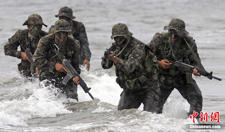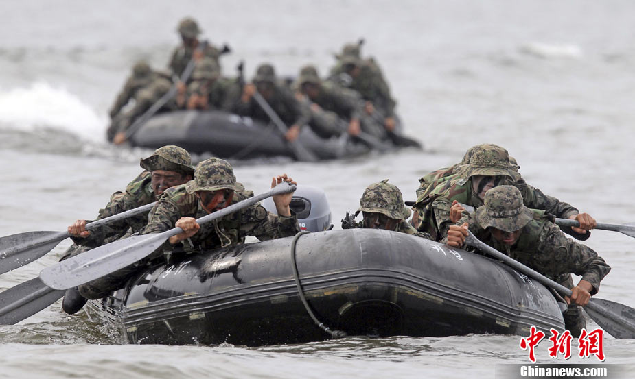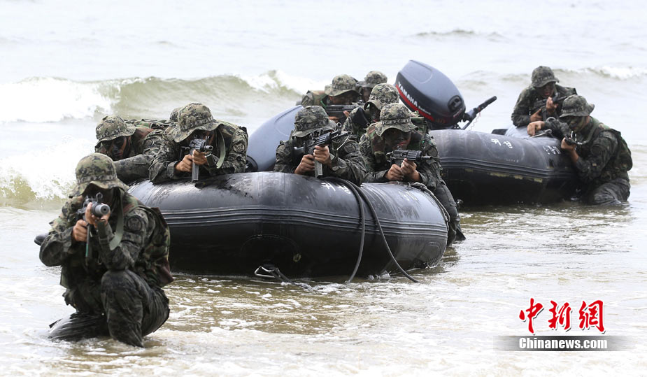 8月12日,韓國(guó)泰安郡安眠島,韓國(guó)陸軍特種部隊(duì)在海灘上進(jìn)行訓(xùn)練。