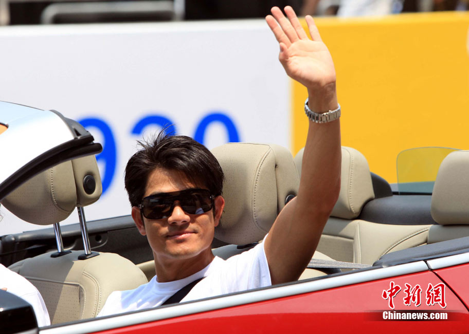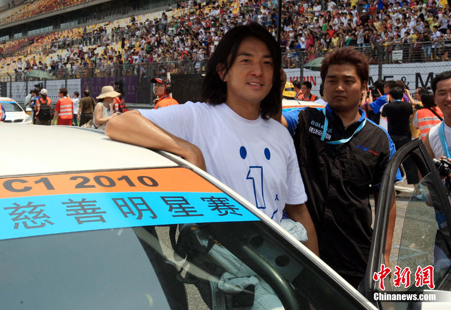 8月16日,由李連杰攜手郭富城等12位明星,在上海國際賽車場參加超級賽車慈善明星賽。中新社發(fā) 潘索菲 攝