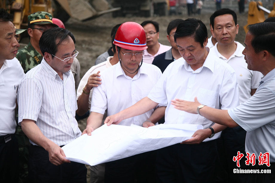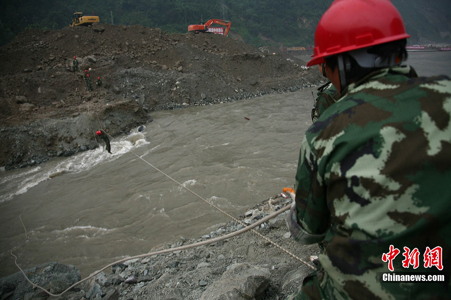 8月17日下午,映秀泥石流搶險(xiǎn)救災(zāi)指揮部對致使岷江改道的堰塞體進(jìn)行了第二次爆破,由于天氣不甚理想,為了盡快實(shí)現(xiàn)岷江河水“回軌”,救援指揮部決定以爆破的方式加快搶險(xiǎn)進(jìn)度。據(jù)爆破現(xiàn)場負(fù)責(zé)人透露,此次爆破主要是為解決8塊巨石,這些巨石超出了挖掘機(jī)的負(fù)荷量,必須選擇爆破方式解決。中新社發(fā) 張浪 攝
