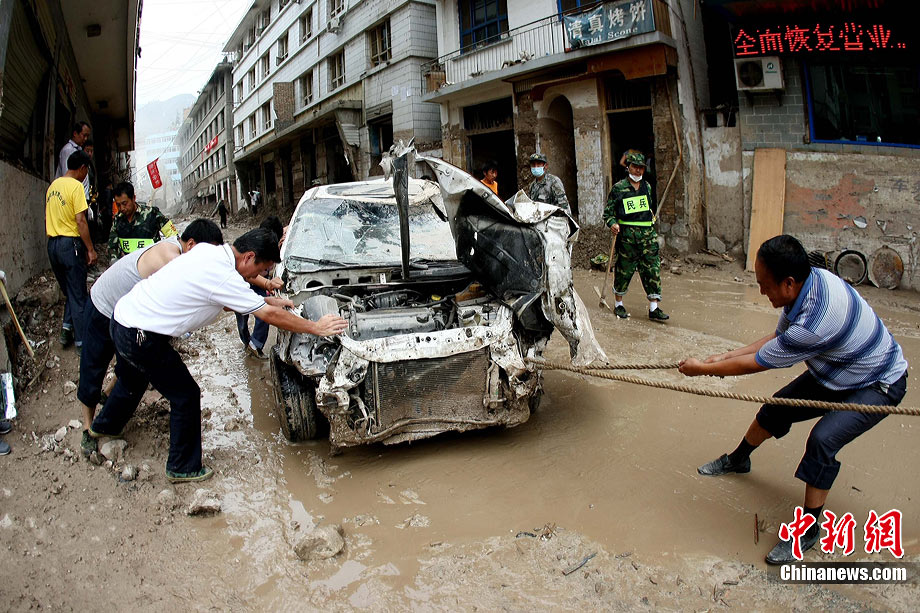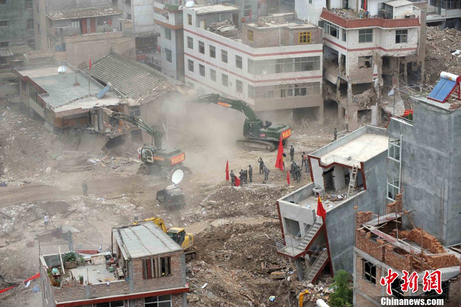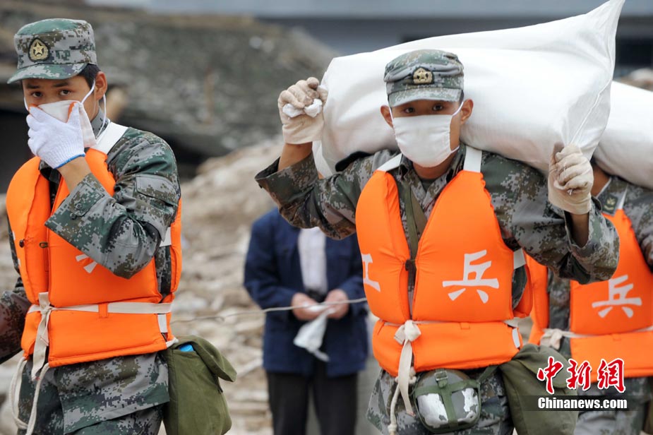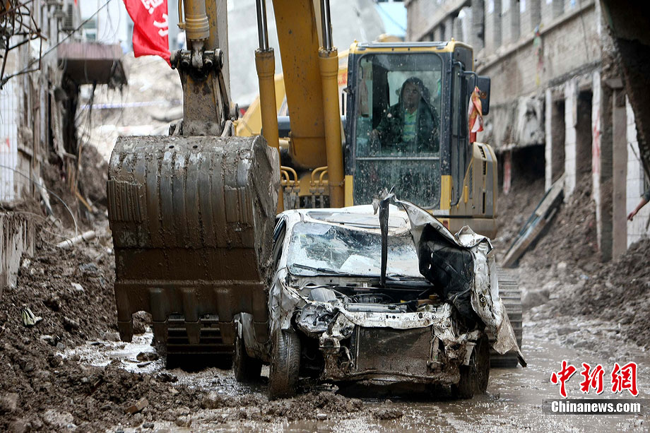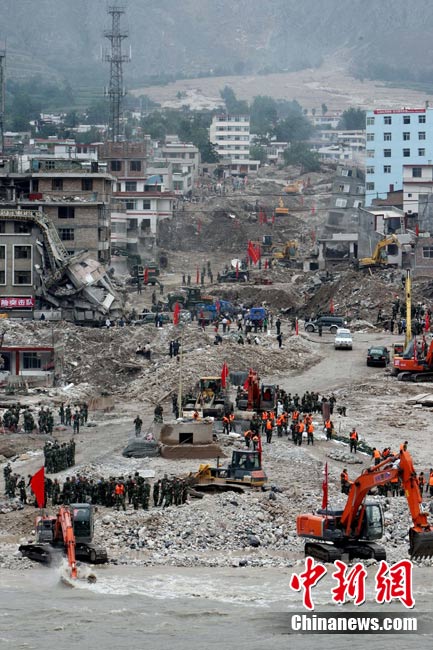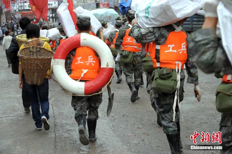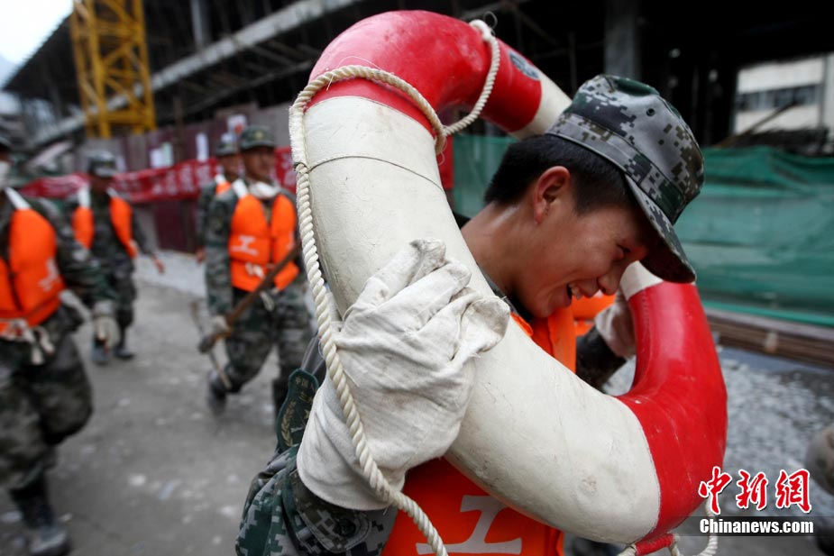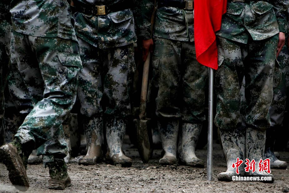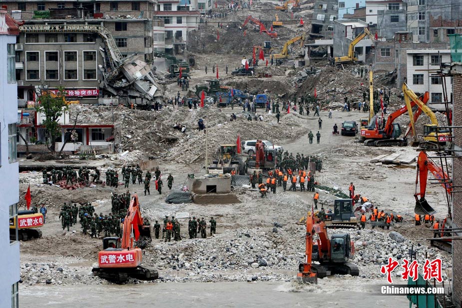 連日來,舟曲搶險救災部隊在三眼峪左岸通過鉛絲籠、石塊固基護腳,爭取盡早開展城江橋下堰塞體清淤疏通作業(yè)。中國水利部部長陳雷表示,舟曲白龍江堰塞體的處置難度已經(jīng)超過了汶川大地震時的唐家山堰塞湖。目前,三眼峪以下河段泄流河道已基本形成。根據(jù)武警水電第三總隊制定的目標,8月26日,白龍江中斷面控制水位要降至1303.38米,水位累計下降5.5米。圖為8月18日,武警水電第三總隊在舟曲挖掘堰塞體。中新社記者 殷春永 攝