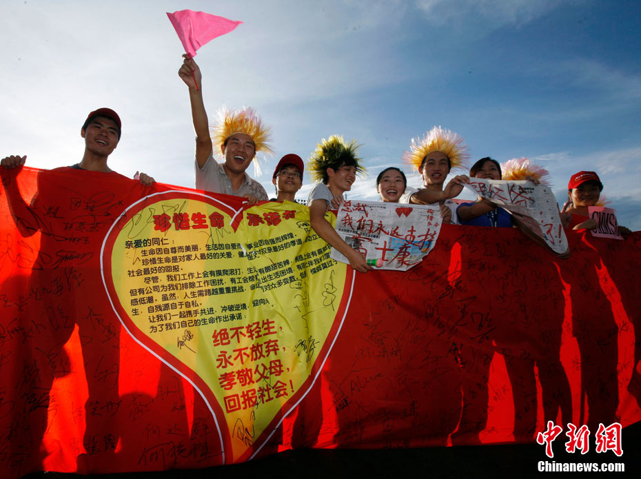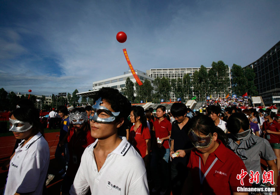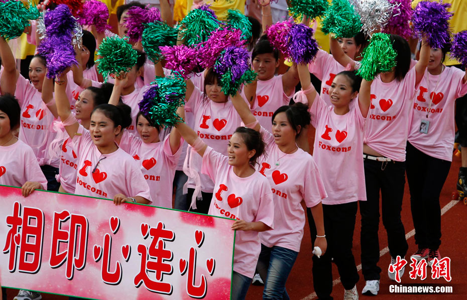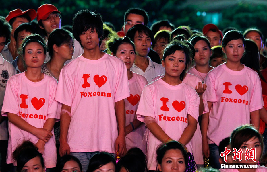 8月18日下午,深圳市富士康廠區(qū),舉行了一場由富士康員工自發(fā)倡議、富士康工會聯合會組織的規(guī)模空前的萬人誓師活動,活動的主題是“珍惜生命,關愛家人”,2萬員工跟著一輛輛彩車歡聲笑語,員工們說這是他們的“狂歡節(jié)”。