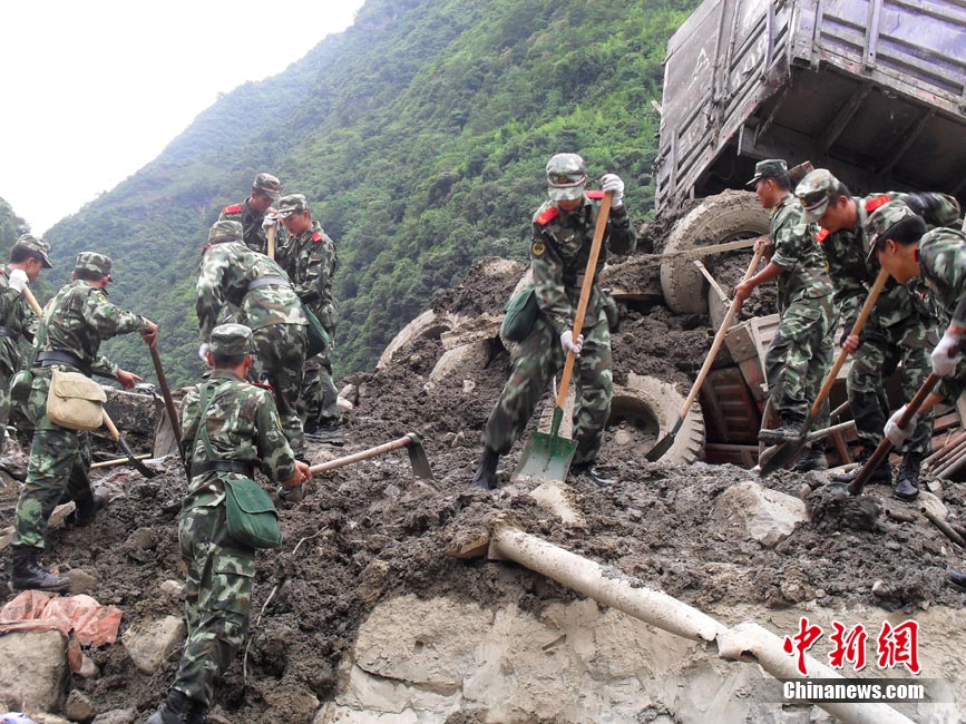 8月19日,中央氣象臺消息,“8.18”云南貢山縣普拉底鄉(xiāng)泥石流災(zāi)害地區(qū)會有中雨,降雨將給救援工作帶來難度。圖為武警云南總隊(duì)怒江支隊(duì)官兵在災(zāi)區(qū)按照救援計(jì)劃實(shí)施救援。 中新社發(fā) 陳慶祥 郝亞鑫 攝 圖片來源:CNSPHOTO
