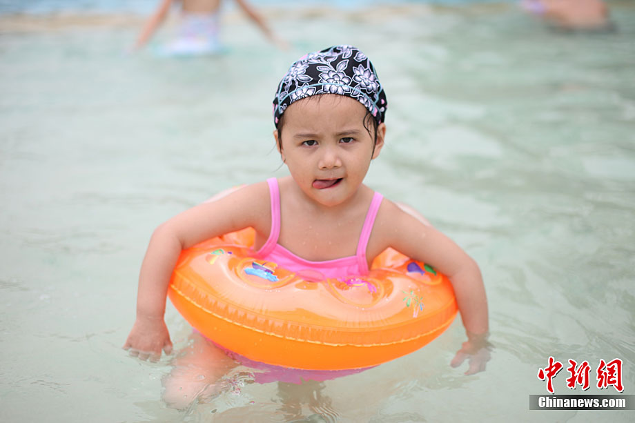 8月19日,重慶再發(fā)高溫橙色預(yù)警,預(yù)計(jì)23日以前該市將連晴高溫。為尋涼爽,一小孩趴在噴水孔附近感受水噴全身的清涼。劉函冉 攝