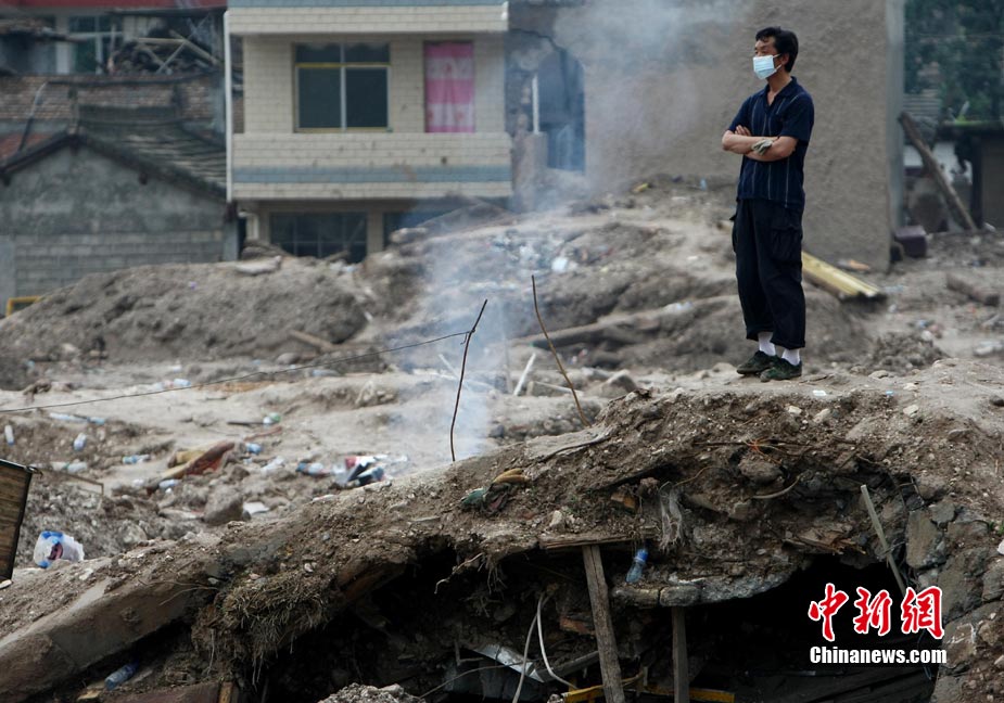 甘肅舟曲縣發(fā)生特大泥石流后,截至8月19日,已導(dǎo)致1364人遇難,401人失蹤,已解救1243人。洪災(zāi)已過去十多天,雖然廢墟中已無生命跡象,但洪災(zāi)生還者還在守望舟曲不愿離去。目前,搶險救災(zāi)工作由應(yīng)急救援逐步轉(zhuǎn)到受災(zāi)群眾進一步安置、河道淤泥廢墟清理、恢復(fù)正常生產(chǎn)生活秩序和重建規(guī)劃。中新社記者 杜洋 攝