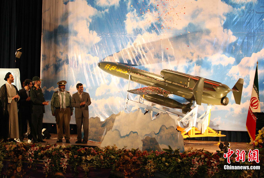 伊朗首架國產(chǎn)無人轟炸機(jī)于當(dāng)?shù)貢r間8月22日公開亮相,伊朗總統(tǒng)內(nèi)賈德和數(shù)名國防官員還參加了該無人機(jī)的揭幕式。該無人機(jī)名為“克拉爾”(Karrar),機(jī)身長4米,它所攜帶的軍事載荷將可以執(zhí)行對地面目標(biāo)的轟炸任務(wù),而且能夠高速進(jìn)行遠(yuǎn)距離飛行。