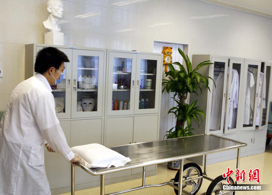 近期,北京團(tuán)市委正在開展“探訪青年勞動(dòng)者”活動(dòng)。二十八歲的八寶山殯儀館整容師張洋便是其中之一。他自二〇〇五年進(jìn)入八寶山殯儀館工作以來(lái),勤學(xué)苦練,刻苦鉆研,勇于創(chuàng)新,共為三千余位逝者提供了高質(zhì)量的整容服務(wù),圓滿完成了二零一零年八名駐海地維和人員不幸遇難后遺體整容工作等二十余次重大任務(wù)。在剛剛結(jié)束的全國(guó)民政行業(yè)職業(yè)技能競(jìng)賽中奪得大賽一等獎(jiǎng)第一名。中新社記者 任海霞 攝