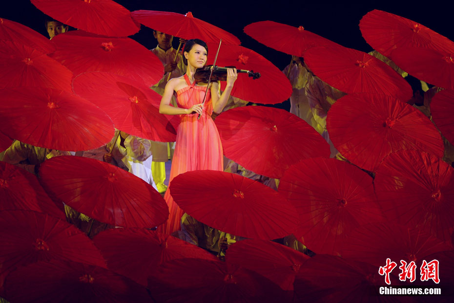8月23日,北京武搏會開幕式彩排中,演員在由12.5萬根筷子粗細(xì)的腈綸線組成的“線陣”中表演。據(jù)了解,這是國內(nèi)首次使用“線陣”作為開幕式創(chuàng)意。 中新社發(fā) 蘇丹 攝