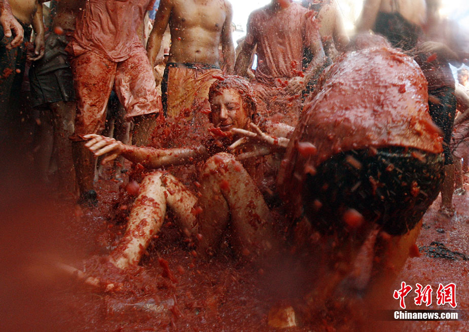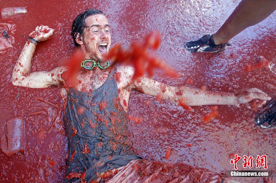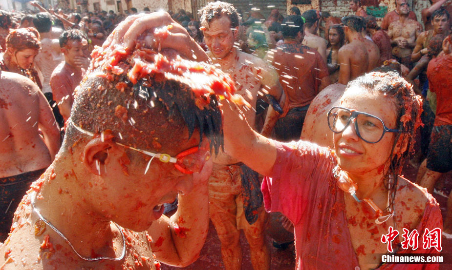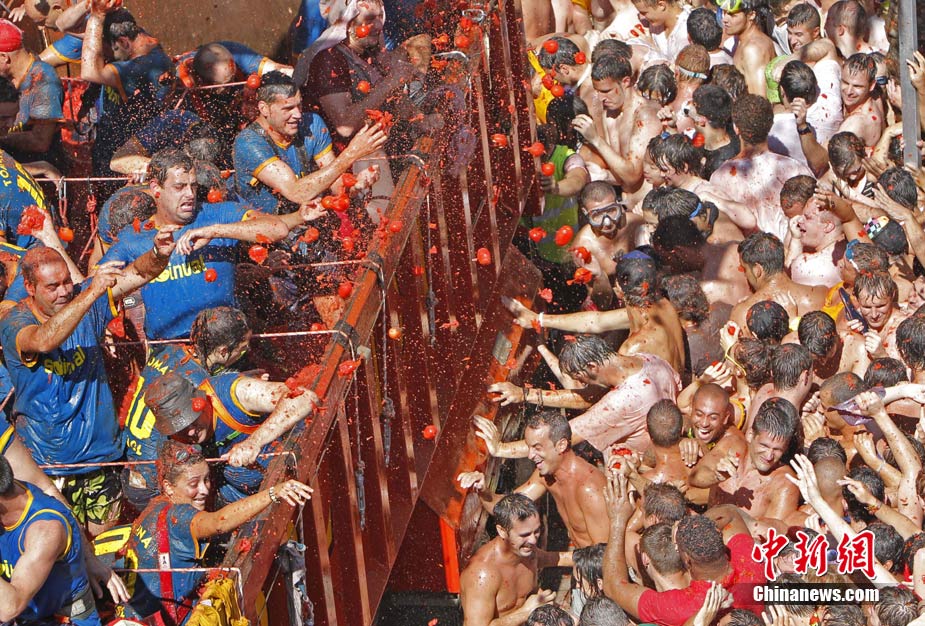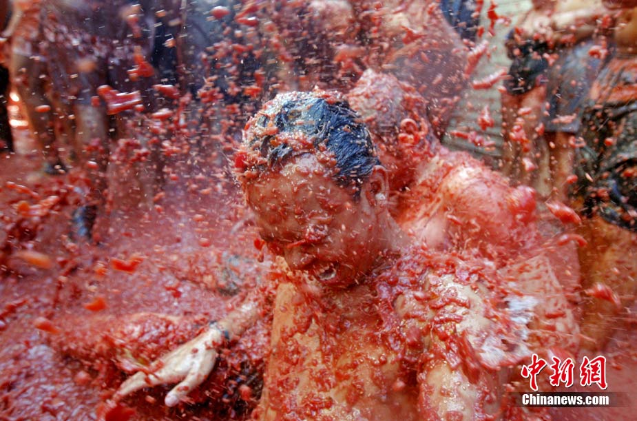 8月25日,西班牙東南部小鎮(zhèn)Bunol迎來傳統(tǒng)的西紅柿狂歡節(jié)。超過4.5萬人參加了此次活動,預(yù)計消耗了超過100噸西紅柿。這也是世界上最大規(guī)模的“番茄大戰(zhàn)”。