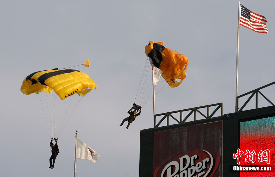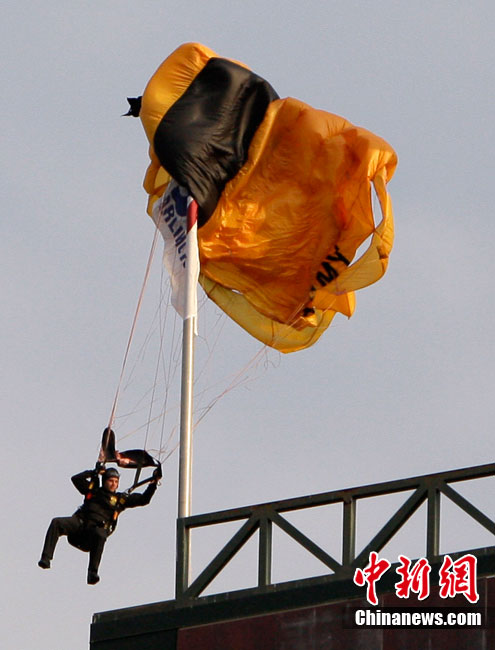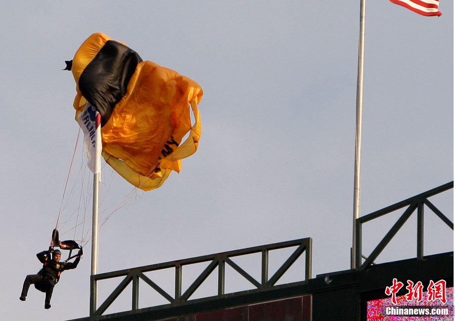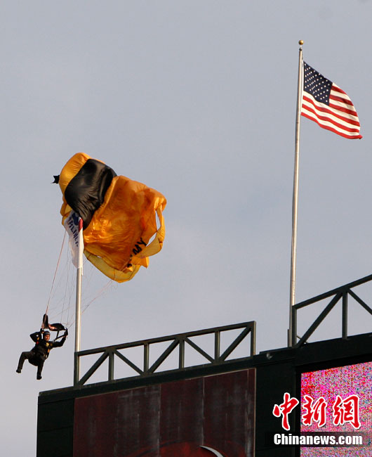 當(dāng)?shù)貢r(shí)間8月24日,一名美國(guó)陸軍的傘兵在美國(guó)德克薩斯州阿靈頓棒球比賽開(kāi)始前的表演中不小心被棒球場(chǎng)旁的旗桿絆住降落傘,掛在了半空中。據(jù)悉,當(dāng)時(shí)這名傘兵從德克薩斯州阿靈頓上空跳傘,原本預(yù)計(jì)著陸在一塊空地,結(jié)果降落傘被棒球場(chǎng)邊的旗桿勾到,被掛在了旗桿上。隨后他在球場(chǎng)工作人員的幫助下獲救。