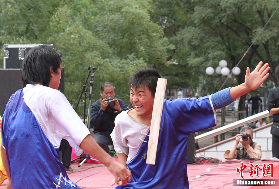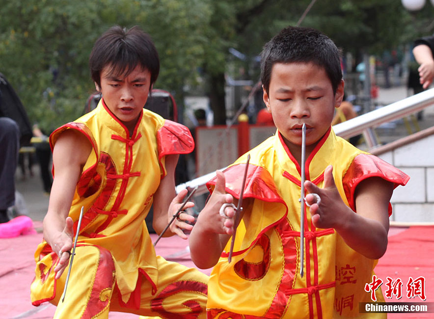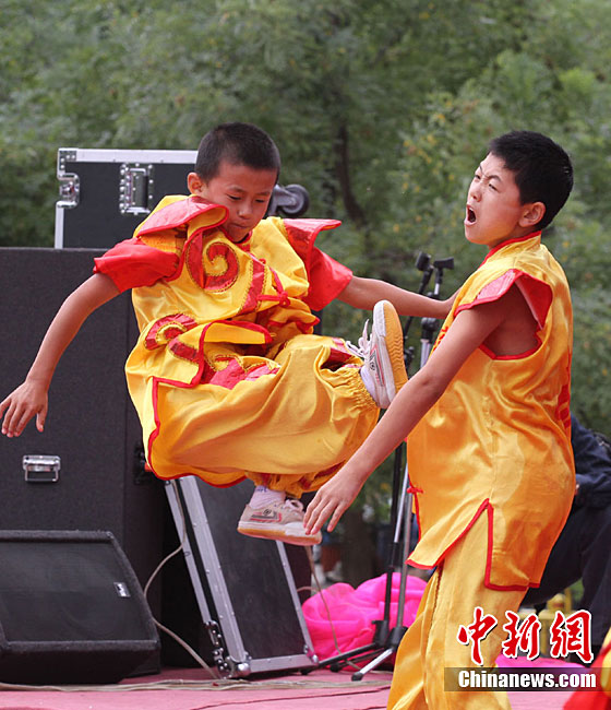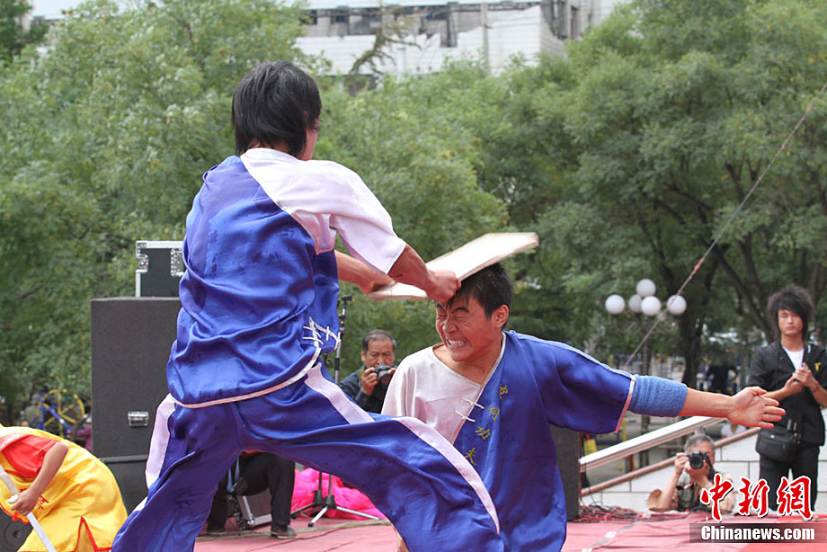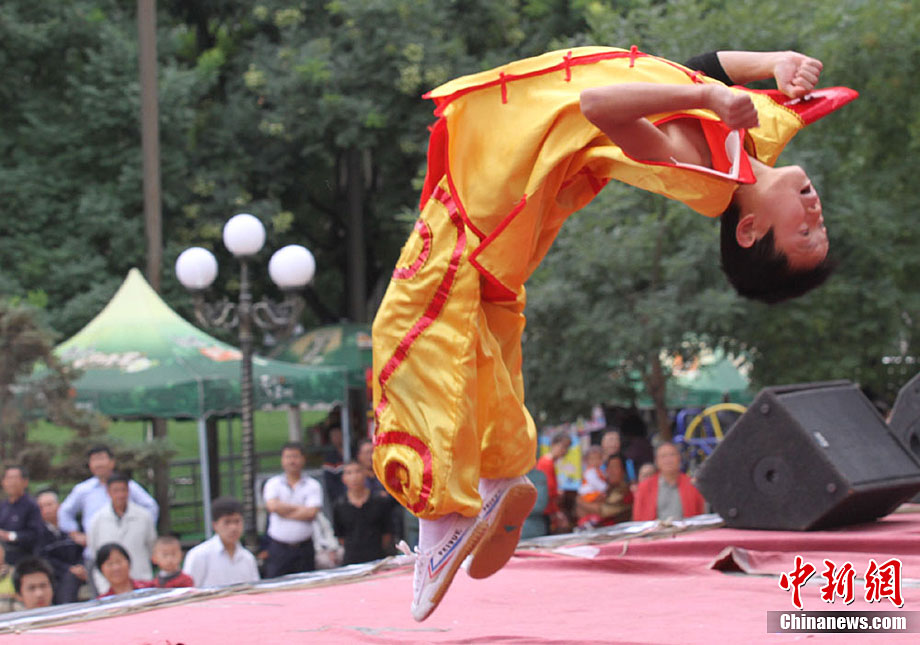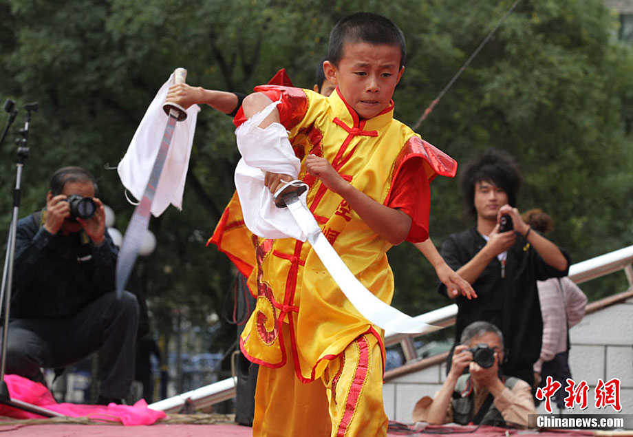 9月1日,蘭州東方紅廣場上演一場崆峒武術(shù)秀。崆峒派武術(shù)是與少林、武當(dāng)、峨嵋、昆侖齊名的五大武術(shù)流源之一,崆峒武術(shù)與道教文化緊密相連,神秘奇詭,風(fēng)格獨(dú)特。中新社記者 殷春永 攝