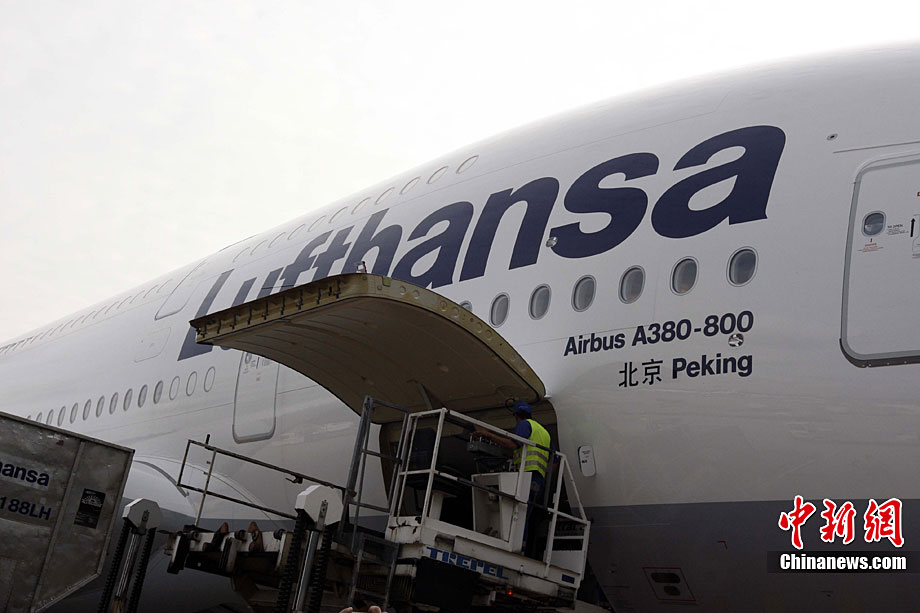 九月二日,德國漢莎航空公司正式開通A380中國北京至漢莎德國主樞紐法蘭克福間航線。漢莎航空公司是首家在通往中國的長途國際航線上采用被譽為是世界上體積最大、最具經(jīng)濟效益的A380空中客車的歐洲航空公司。為了紀(jì)念這一歷史性的時刻以及漢莎航空與中國深厚的友誼,這架A380被命名為“北京號”,而這也是漢莎航空首次以非德國城市命名旗下飛機。中新社記者 任海霞 攝