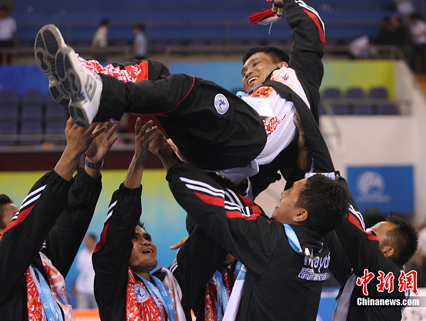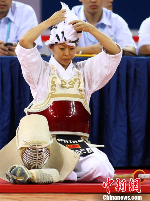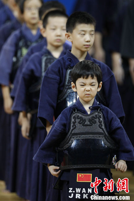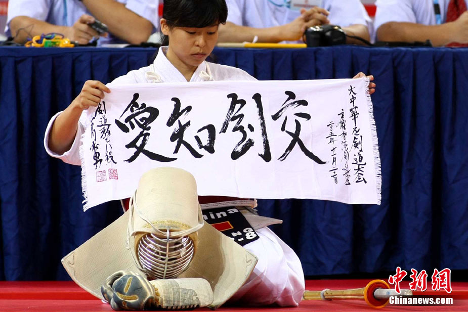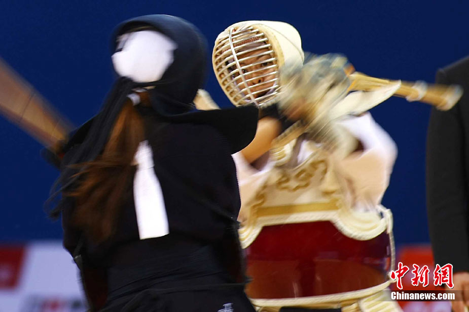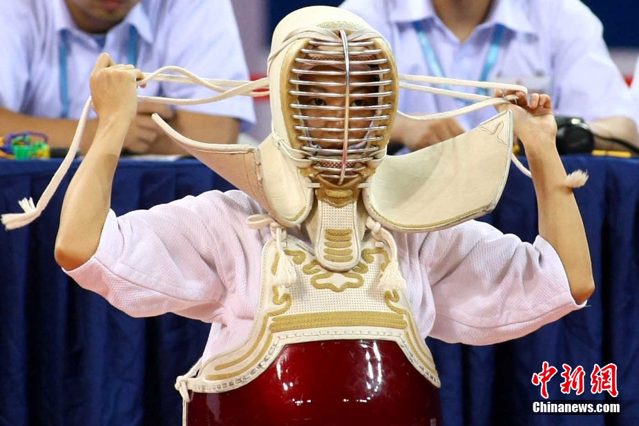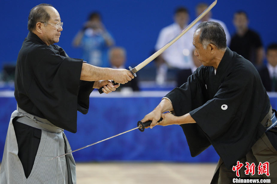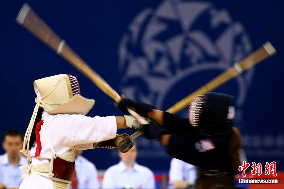9月3日,2010年北京首屆世界武搏運(yùn)動(dòng)會(huì)劍道比賽在北京科技大學(xué)體育館開賽,當(dāng)天舉行男、女個(gè)人賽預(yù)賽和決賽及女子特殊邀請(qǐng)賽預(yù)賽和決賽。圖為在男子個(gè)人邀請(qǐng)賽中,日本選手昭司寺本(Shoji TERAMOTO)(右)和巴西選手奧納卡(Ernesto Eisaku ONAKA)在比賽中。中新社記者 盛佳鵬 攝