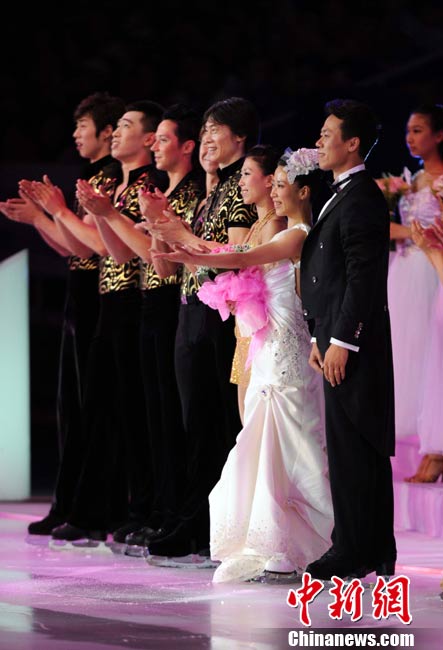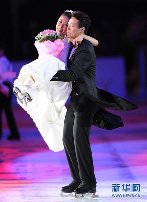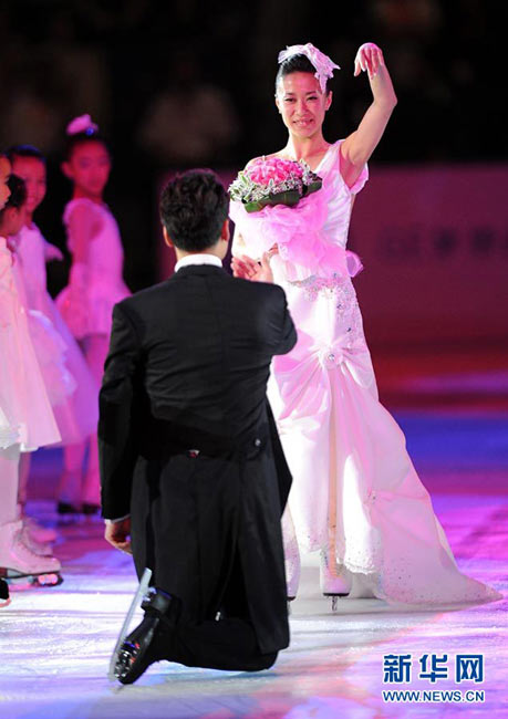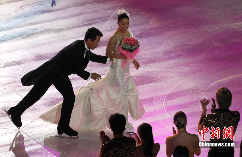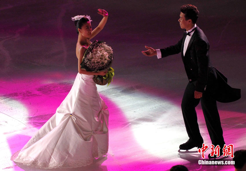 9月4日,申雪/趙宏博在首都體育館舉辦冰上婚典,并邀請(qǐng)普魯申科、亞古丁、約翰尼·威爾、淺田真央、羅切特等世界花滑巨星,聯(lián)袂世界著名編舞大師瑞內(nèi)·羅卡、歌星張靚穎、小提琴家呂思清等,為中國(guó)觀眾奉獻(xiàn)上一場(chǎng)賞心悅目、浪漫唯美的視聽(tīng)盛宴。