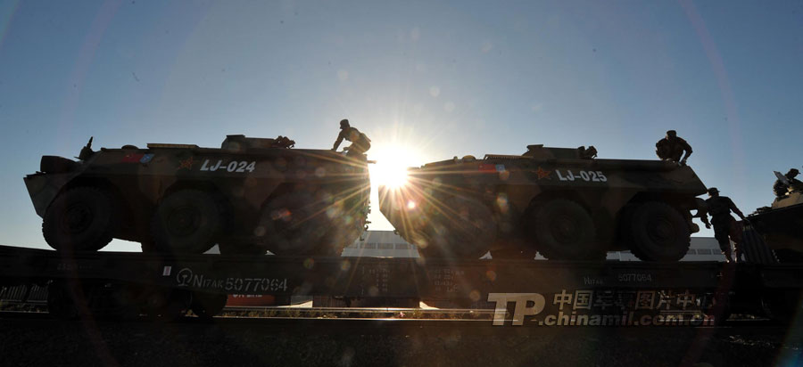 隨著軍列一聲長鳴,中方陸軍戰(zhàn)斗群第一梯隊(duì)9月5日晚于新疆阿拉山口駛出國門,進(jìn)入哈薩克斯坦境內(nèi),參加“和平使命-2010”聯(lián)合軍演。這是中國軍隊(duì)第二次跨境遠(yuǎn)程投送兵力參加上合聯(lián)演。