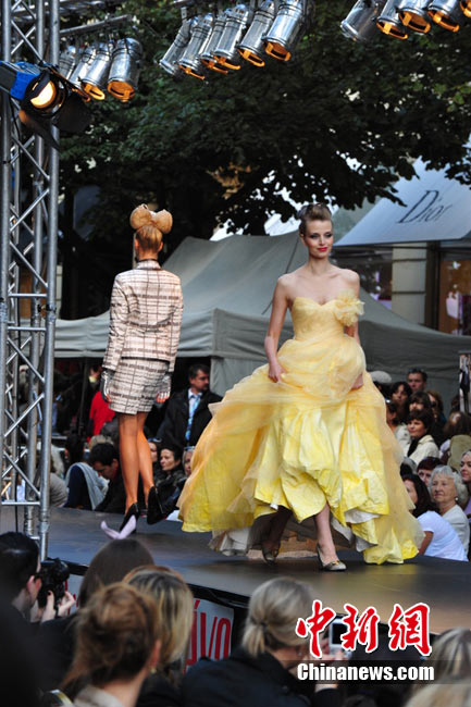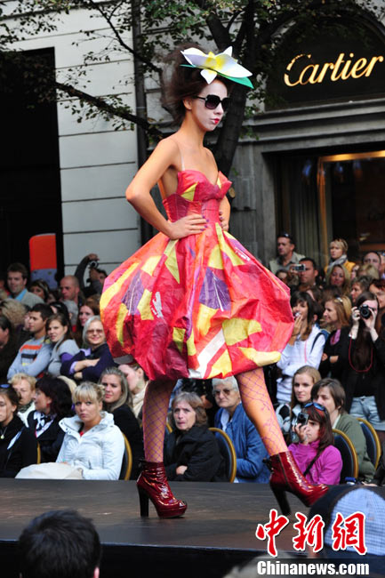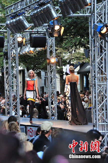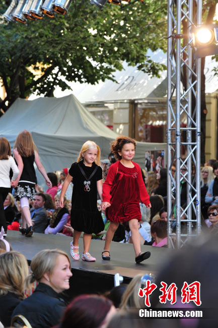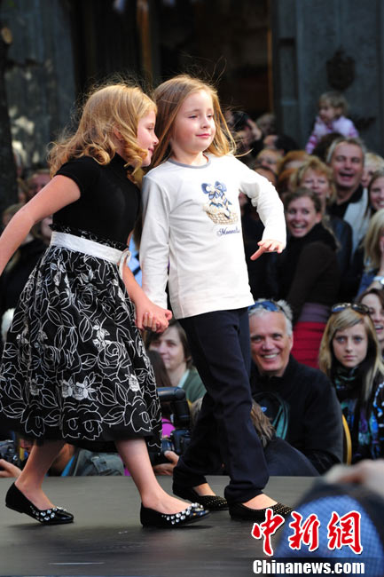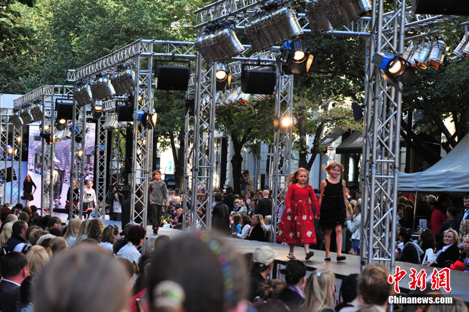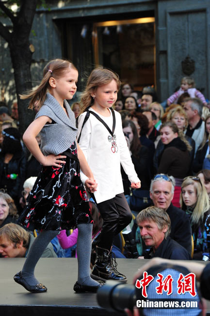 捷克首都布拉格4日和5日接連兩天在市中心最繁華的商業(yè)街巴黎大街封閉車(chē)輛交通,在街道中間搭起長(zhǎng)臺(tái),向公眾表演時(shí)裝秀。其中一組兒童秀引起觀眾轟動(dòng)。黃頻 攝