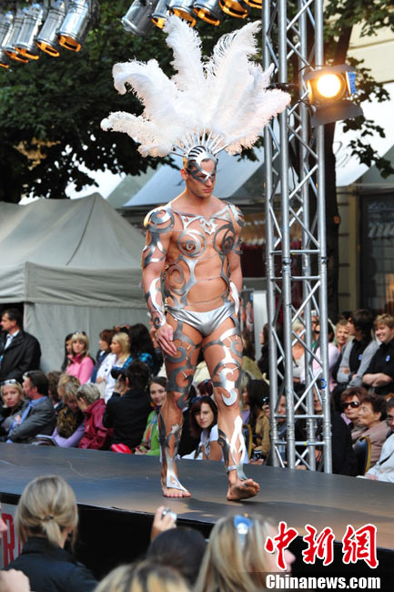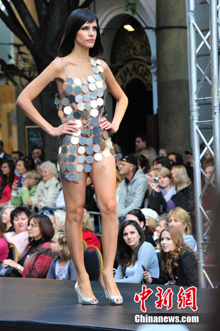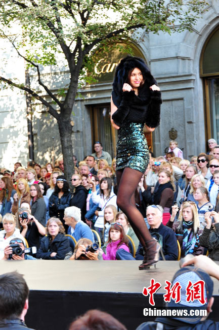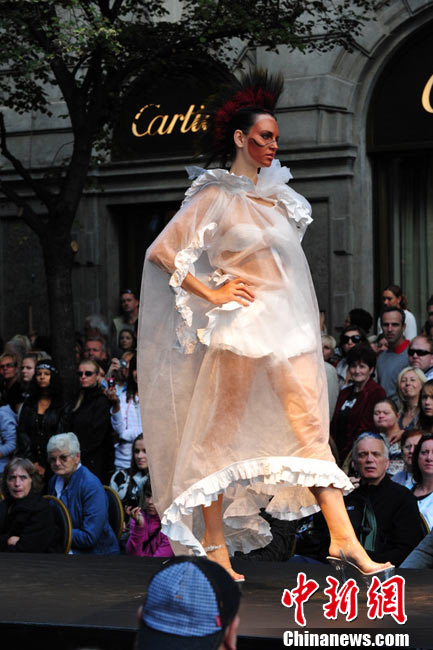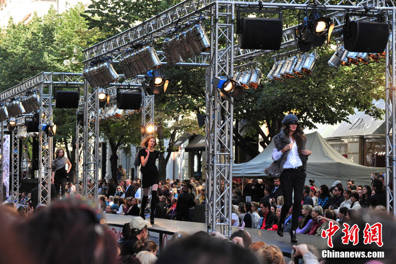 捷克布拉格繁華街區(qū)上演街頭時(shí)裝秀