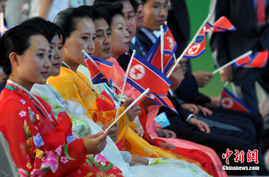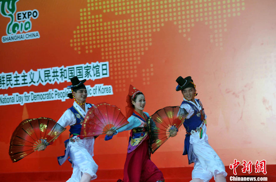 9月6日,上海世博會迎來朝鮮國家館日。平壤國家藝術(shù)團的演員用中文演唱《紅旗飄飄》。中新社記者 蔣雪林 攝