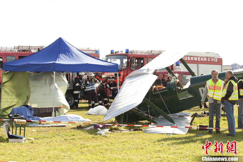 德國南部5日舉行的一次飛行表演發(fā)生意外事故,一架由螺旋槳推動(dòng)的小型飛機(jī)在起飛時(shí)突然失控,墜入觀眾席,造成1人死亡,38人受傷。飛行員則安然無恙。