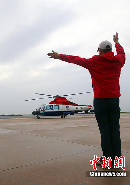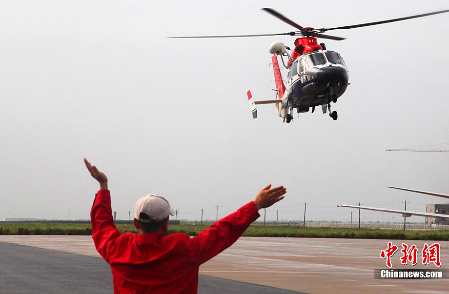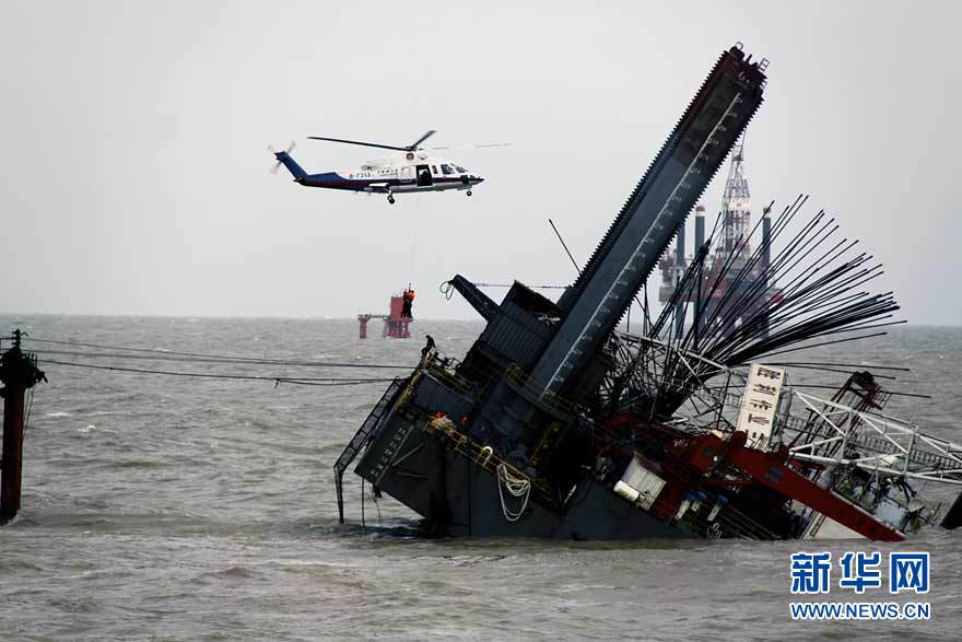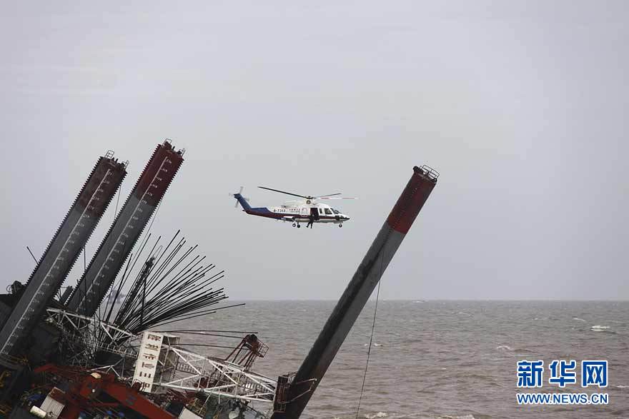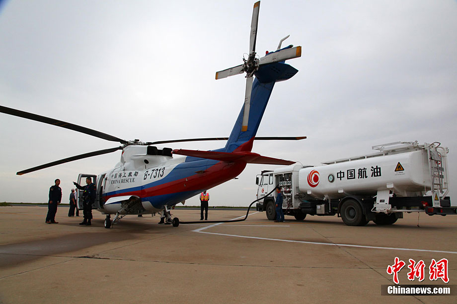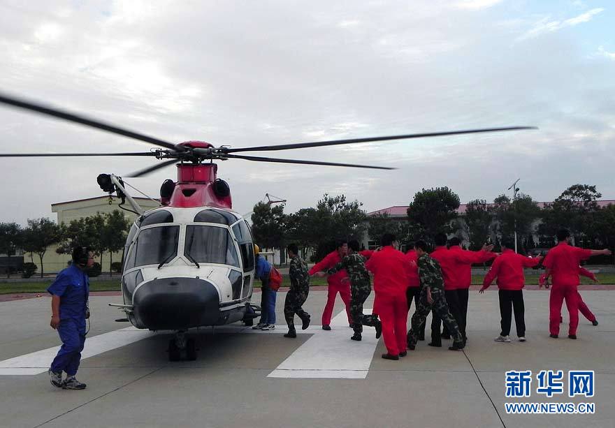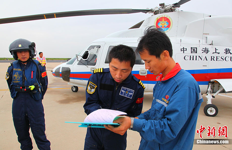 9月8日,交通運輸部北海第一救助飛行隊救援人員駕駛直升機在傾斜的山東東營勝利油田3號鉆井平臺事故現(xiàn)場搜救。 9月7日23時,山東東營勝利油田位于渤海的作業(yè)3號鉆井平臺,因傾斜遇險,平臺上4人落水,32人被困平臺。中國海上搜救中心連夜救助,目前已有34人獲救,救援人員正在全力搜救2名失蹤人員。圖片來源:新華網(wǎng)