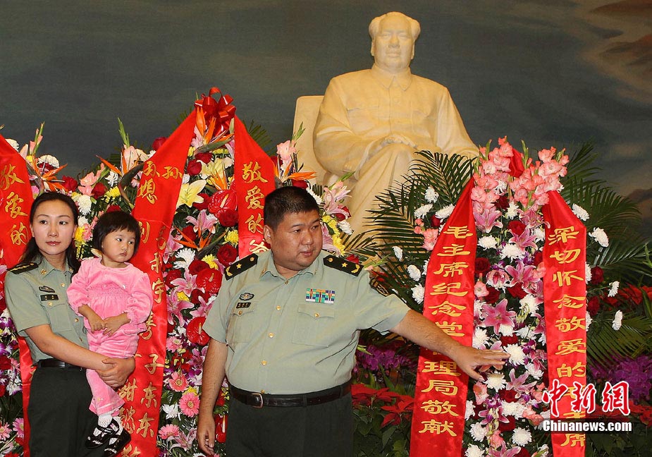 9月9日是毛澤東逝世34周年紀(jì)念日。當(dāng)日上午,毛澤東的孫子、剛剛晉升為解放軍少將的毛新宇與夫人劉濱,帶著兩歲的女兒毛甜懿到位于北京天安門廣場的毛主席紀(jì)念堂敬獻(xiàn)鮮花。中新社記者 任晨鳴 攝