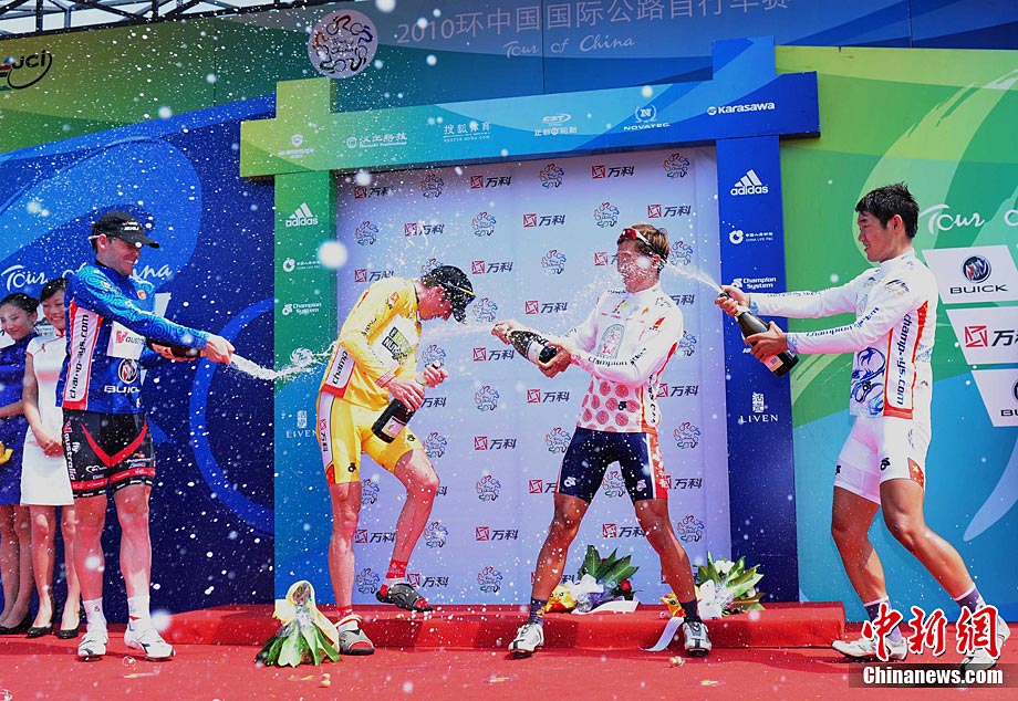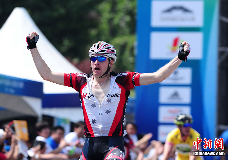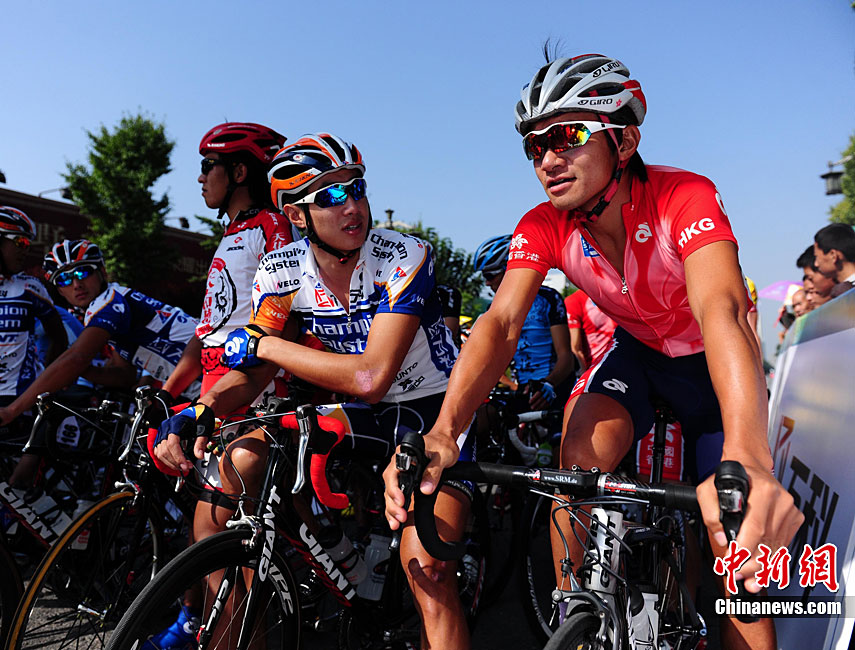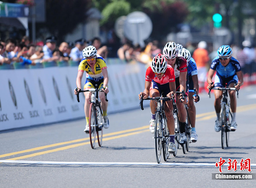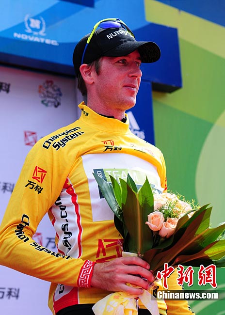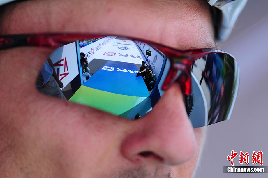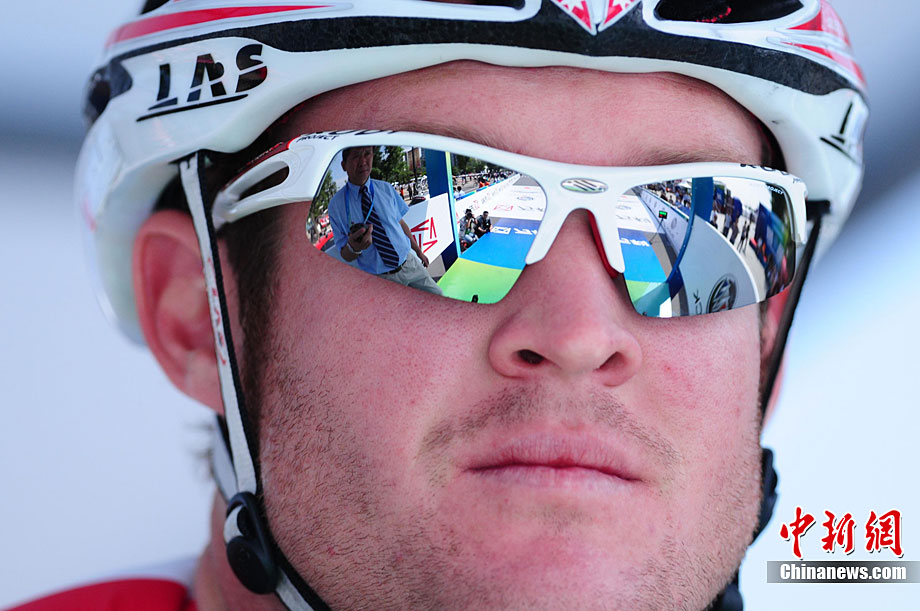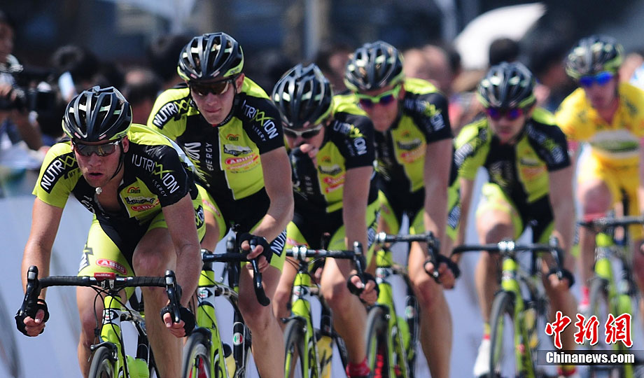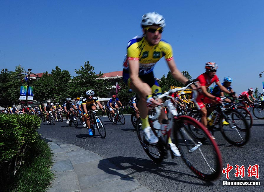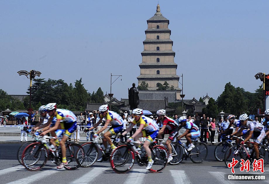 9月10日上午,首屆環(huán)中國(guó)國(guó)際公路自行車賽序幕賽(個(gè)人計(jì)時(shí)賽)在西安市曲江池畔舉行,結(jié)果德國(guó)紐特里什車隊(duì)的車手德克·穆勒(中)獲得本賽段冠軍,奪得本次比賽的首件黃色領(lǐng)騎衫。中新社記者 侯宇 攝