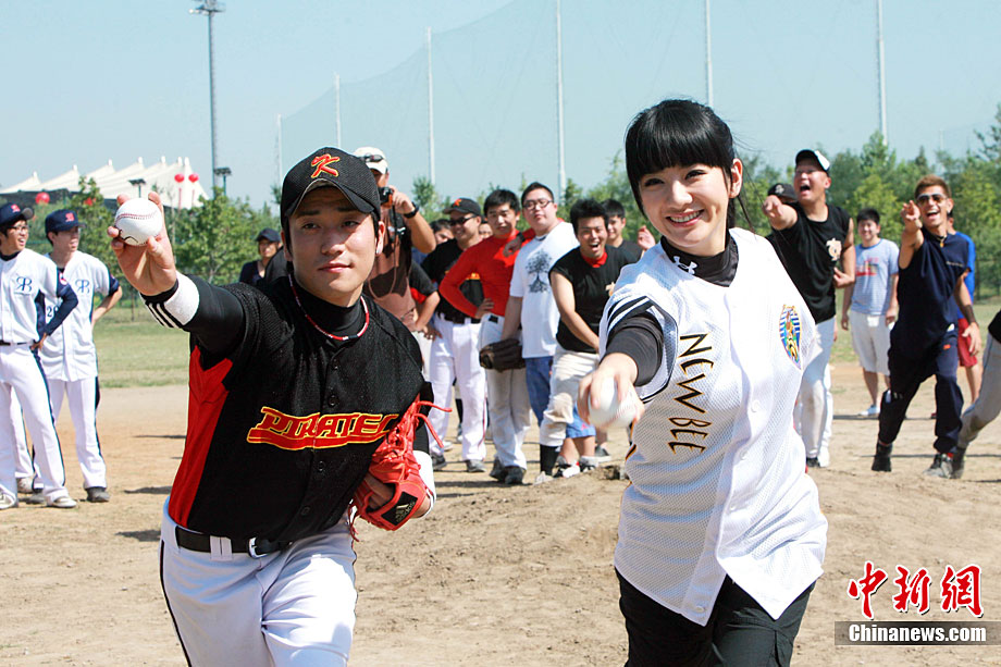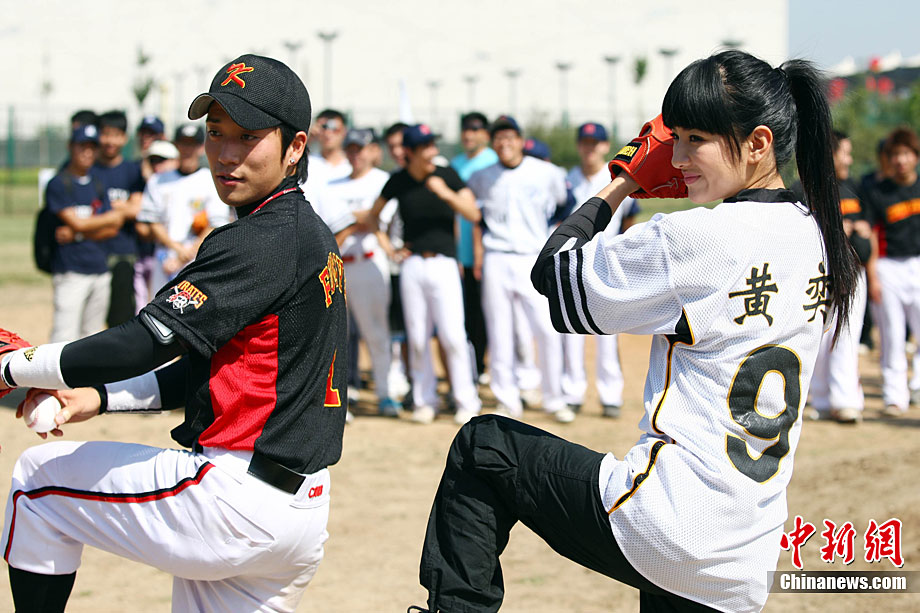 9月12日,全民棒壘聯(lián)盟PBSL秋季聯(lián)賽在北京開(kāi)幕。黃奕作為開(kāi)球嘉賓出席。在中日韓精英隊(duì)隊(duì)員們的指導(dǎo)下,黃奕現(xiàn)場(chǎng)打起棒球有模有樣。2010全民棒壘聯(lián)盟PBSL得到了在京的廣大中、日、韓、美等國(guó)棒壘球愛(ài)好者的踴躍支持,秋季聯(lián)賽將有超過(guò)30支泛北京區(qū)域(北京、河北以及天津)球隊(duì)參加。中新社記者 李學(xué)仕 攝