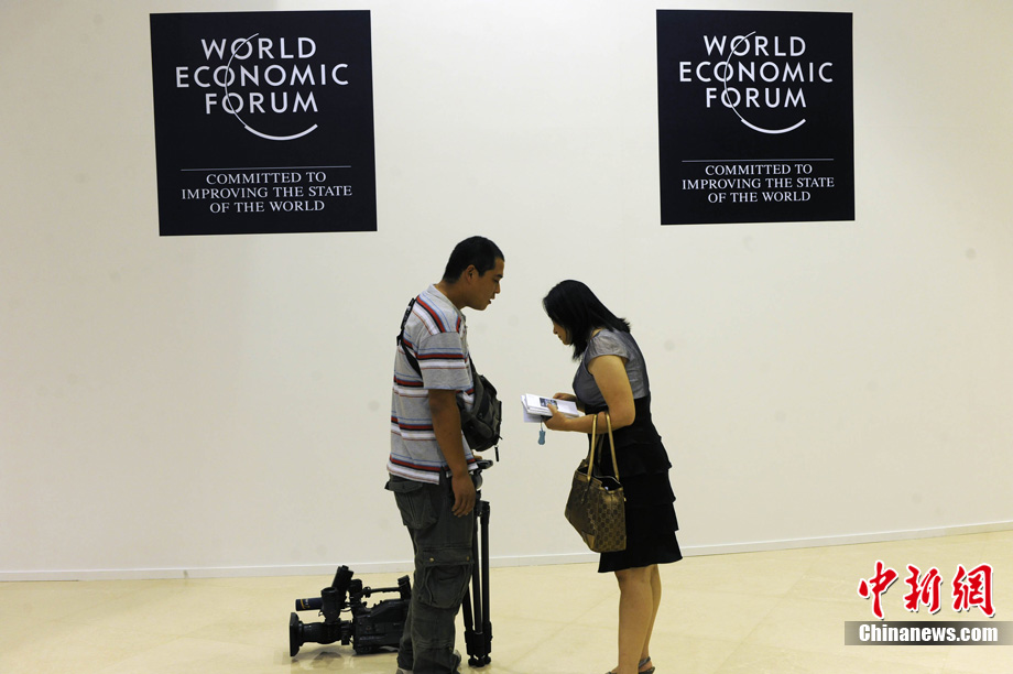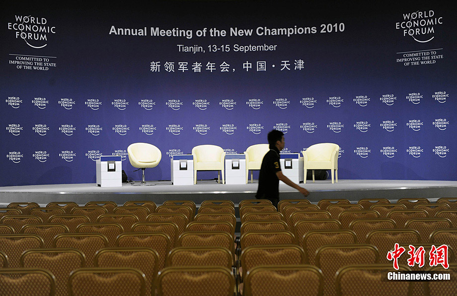 9月12日,2010夏季達沃斯各項籌備就緒,靜待明日開幕。近90個國家的超過1500名代表云集天津,將圍繞“推動可持續(xù)增長”這一主題展示各自真知灼見。中新社記者 劉震 攝