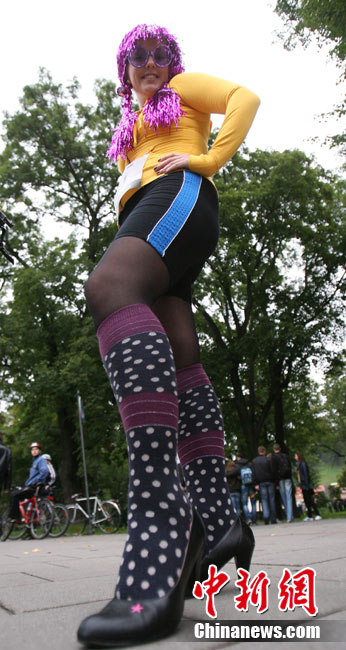 9月11日,在立陶宛首都舉行了一場(chǎng)別開生面的高跟鞋賽跑大賽。