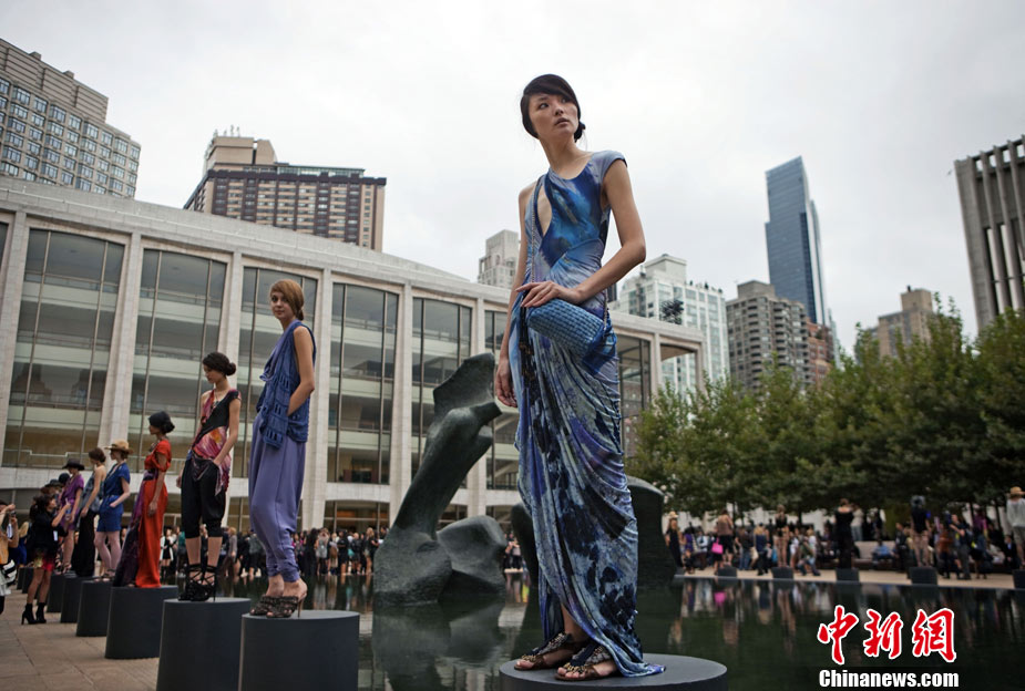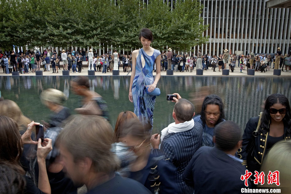 9月12日,美國(guó)紐約時(shí)裝周上演了一場(chǎng)“湖邊時(shí)裝秀”。