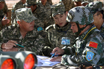 9月14日,“和平使命-2010”上海合作組織(上合組織)成員國武裝力量聯(lián)合反恐軍事演習(xí),按計(jì)劃在哈薩克斯坦馬特布拉克訓(xùn)練場進(jìn)行聯(lián)演戰(zhàn)役準(zhǔn)備階段的首次合練。圖為中方參演部隊(duì)的坦克參加合練。中新社記者 孫自法 攝