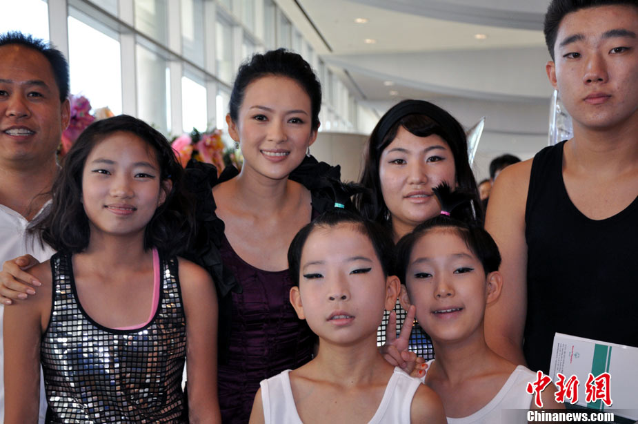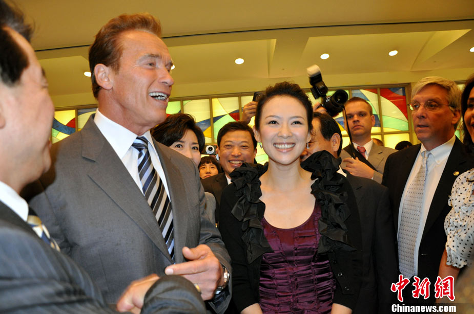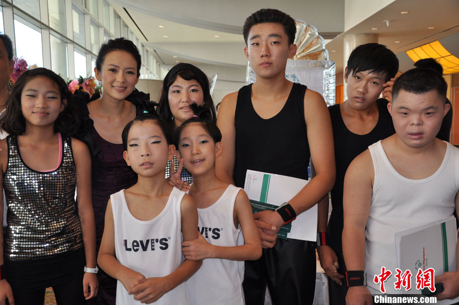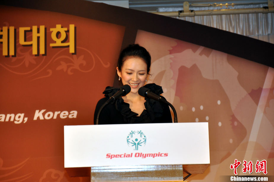 當?shù)貢r間9月15日上午,國際特奧會在首爾舉辦“2013年特殊奧林匹克冬季運動會”新聞發(fā)布會和簽字儀式,并宣布韓國平昌將成為本屆冬季特奧會的主辦地。特奧全球形象大使、國際影星章子怡出席發(fā)布會,身體力行關(guān)愛智障人士,為他們的表演和精神鼓勁加油。美國加州州長、前動作巨星阿諾德•施瓦辛格出席該活動,并與章子怡等共同見證特奧的啟動。圖為章子怡為智障兒童加油打氣。