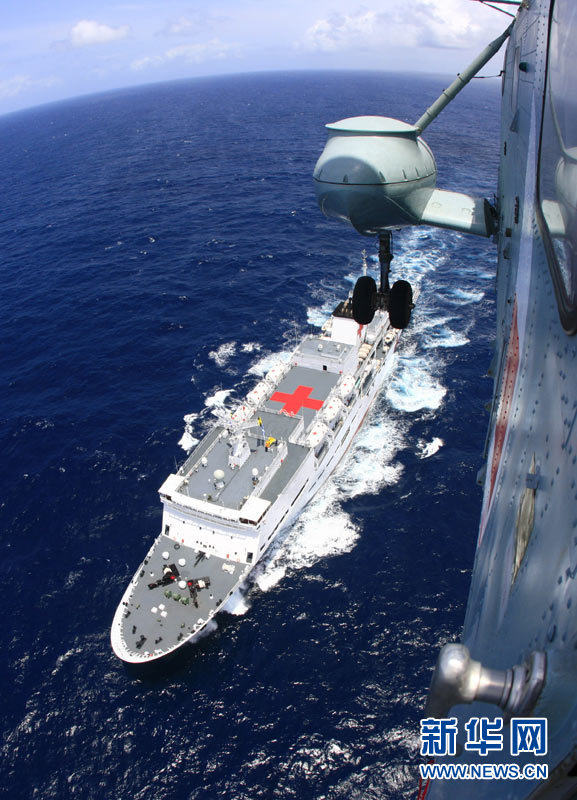 執(zhí)行“和諧使命—2010”任務(wù)的中國“和平方舟”號醫(yī)院船安全航行5300余海里后,于15日駛抵亞丁灣。2天后,醫(yī)院船將與正在亞丁灣海域執(zhí)行護航任務(wù)的中國海軍第六批艦艇編隊會合,并為護航官兵展開全方位的醫(yī)療服務(wù)!昂推椒街邸碧栣t(yī)院船8月31日從中國舟山啟航,前往亞丁灣海域及吉布提、肯尼亞、坦桑尼亞、塞舌爾、孟加拉國等亞非五國執(zhí)行“和諧使命—2010”任務(wù)。查春明 攝 (圖片來源:新華網(wǎng))