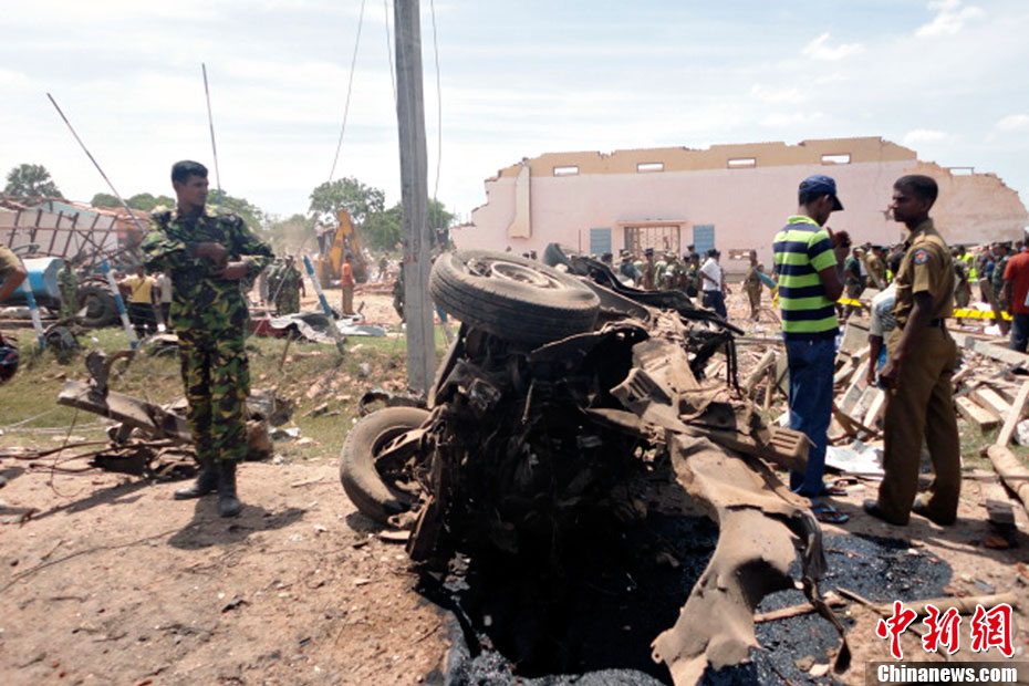 9月17日,斯里蘭卡東部拜蒂克洛鎮(zhèn)一個警察局當天發(fā)生爆炸,造成包括兩名中國工人在內(nèi)的數(shù)十人死亡。圖為斯里蘭卡警方調(diào)查爆炸現(xiàn)場。