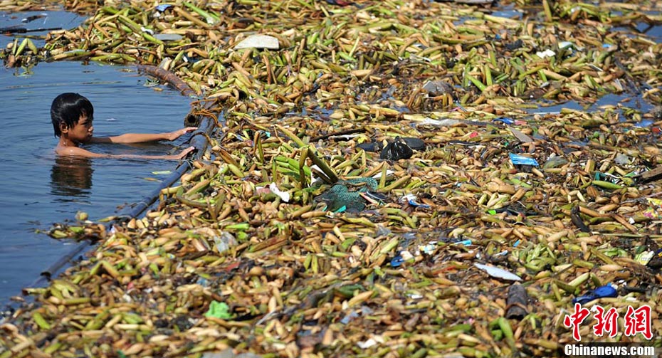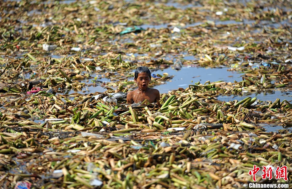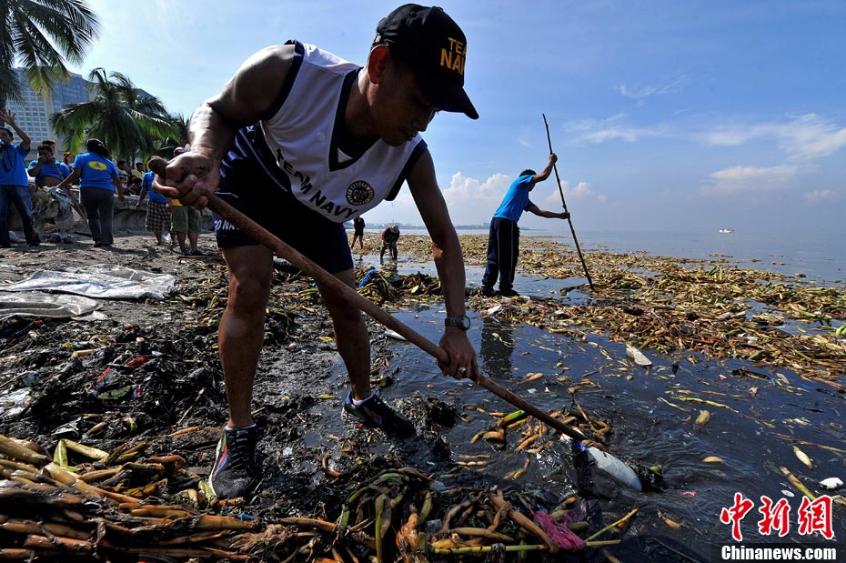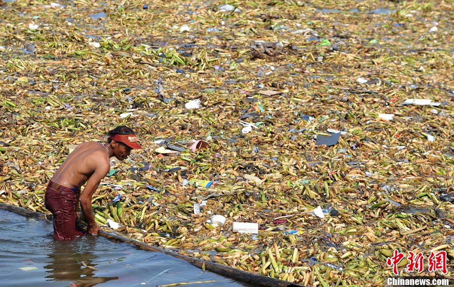 9月19日,菲律賓馬尼拉灣舉行了由眾多志愿者參加的義務(wù)清潔河面活動(dòng)。由于水草瘋狂生長(zhǎng)、人們亂扔垃圾,菲律賓馬尼拉灣河面上已經(jīng)漂滿了各種雜物。有些河段垃圾幾乎覆蓋了全部水面。