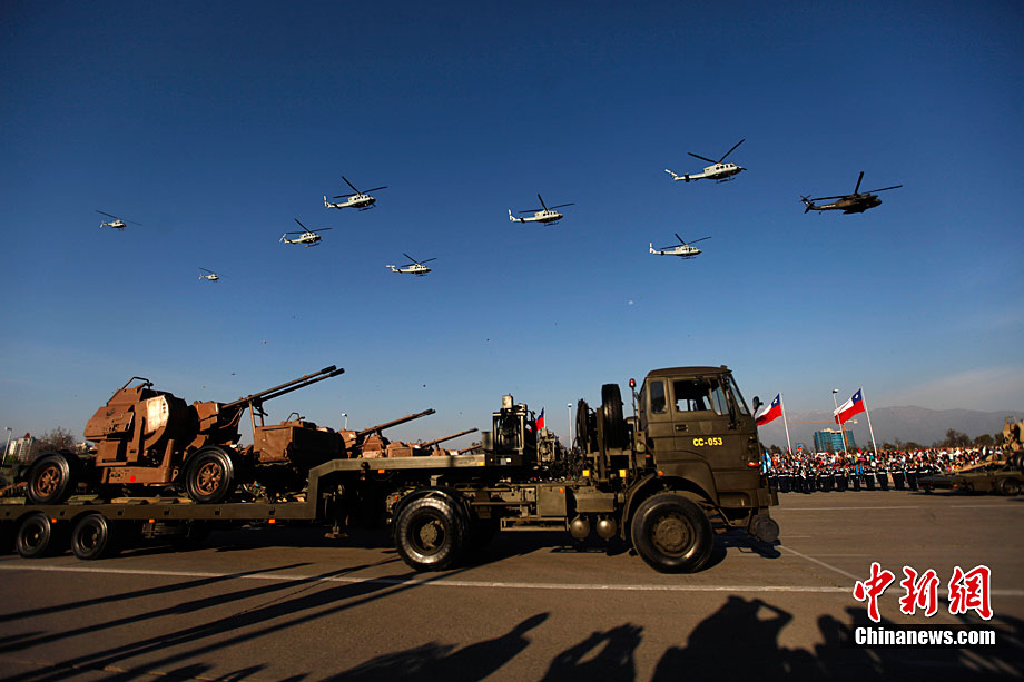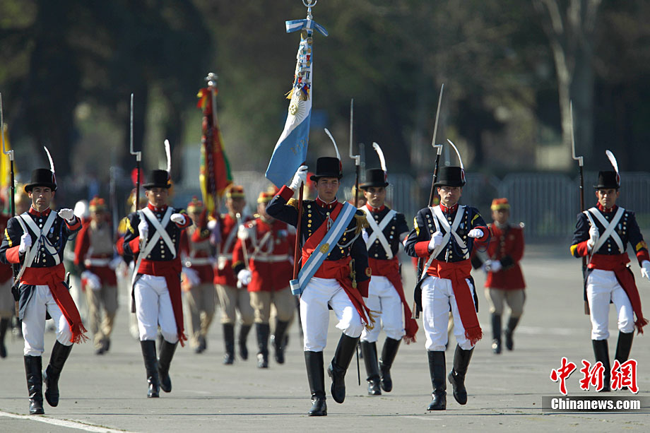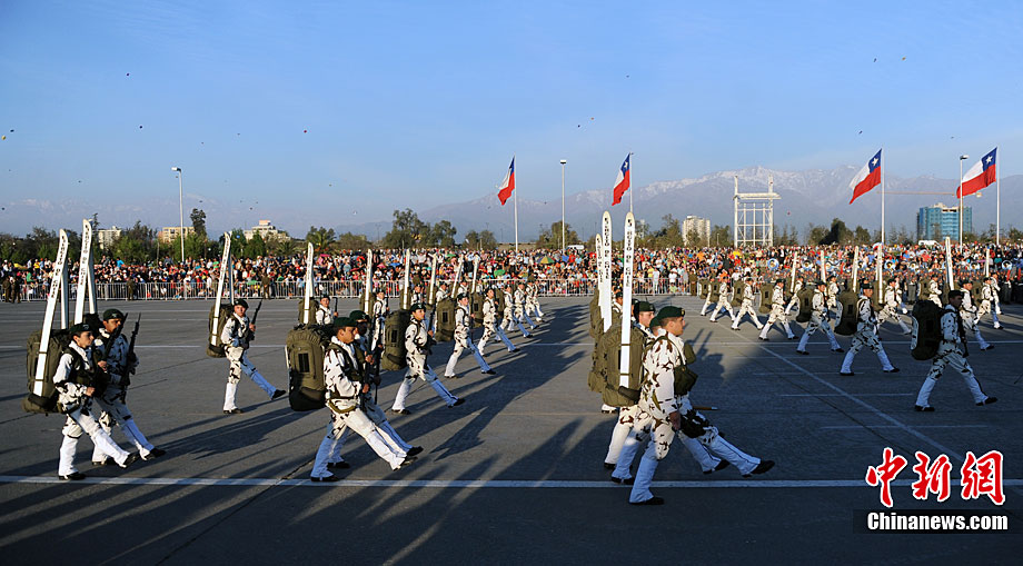 當(dāng)?shù)貢r間9月19日,智利首都圣地亞哥舉行了慶祝智利獨立200周年閱兵式。