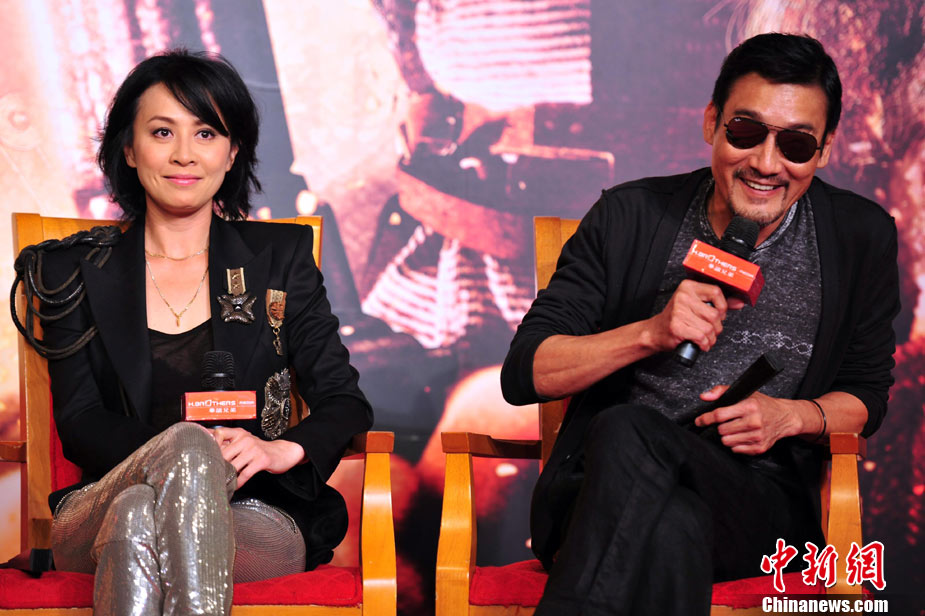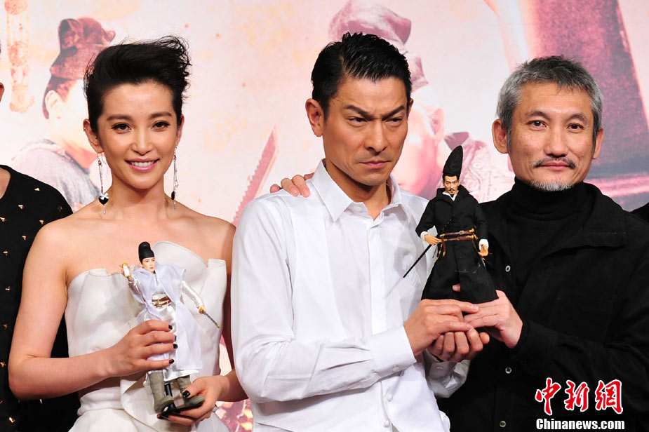 9月19日,由徐克導演、陳國富監(jiān)制、洪金寶擔任武術(shù)指導的華誼兄弟大片革命之作《狄仁杰之通天帝國》在京舉行亞洲首映發(fā)布會。導演徐克攜主演劉德華、李冰冰、劉嘉玲、梁家輝、鄧超全陣容亮相,這也是五大主演首次同臺宣傳。主演狄仁杰的劉德華在現(xiàn)場大開玩笑,多次引爆笑彈。該片將于9月29日上映。圖為劉德華扮起觀音姿勢。中新社記者 李學仕 攝