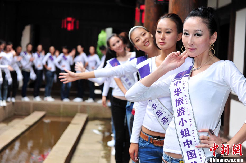 9月23日,2010中華旅游小姐中國總決賽暨劍門關(guān)旅游形象大使全國選拔賽在四川省劍閣縣正式開賽。來自全國各省區(qū)的40名佳麗同登劍門關(guān),用美麗的身姿為這座千年蜀道雄關(guān)增添了靚麗的風(fēng)景線。中新社記者 李學(xué)仕 攝
