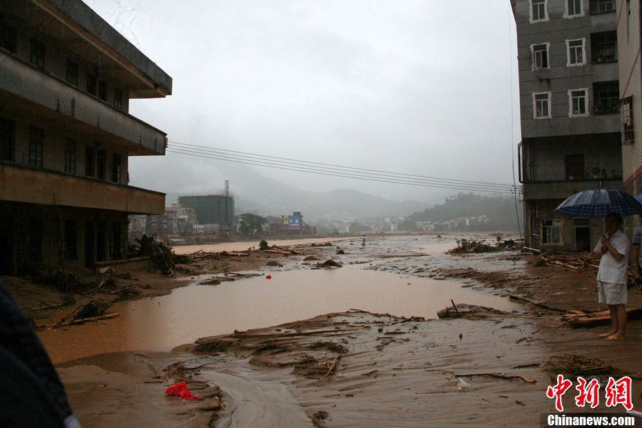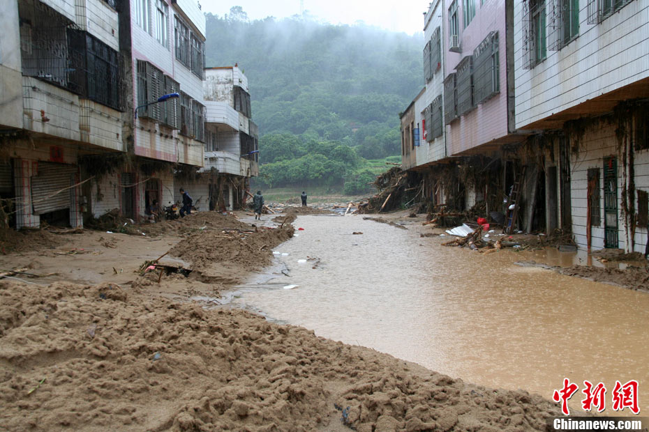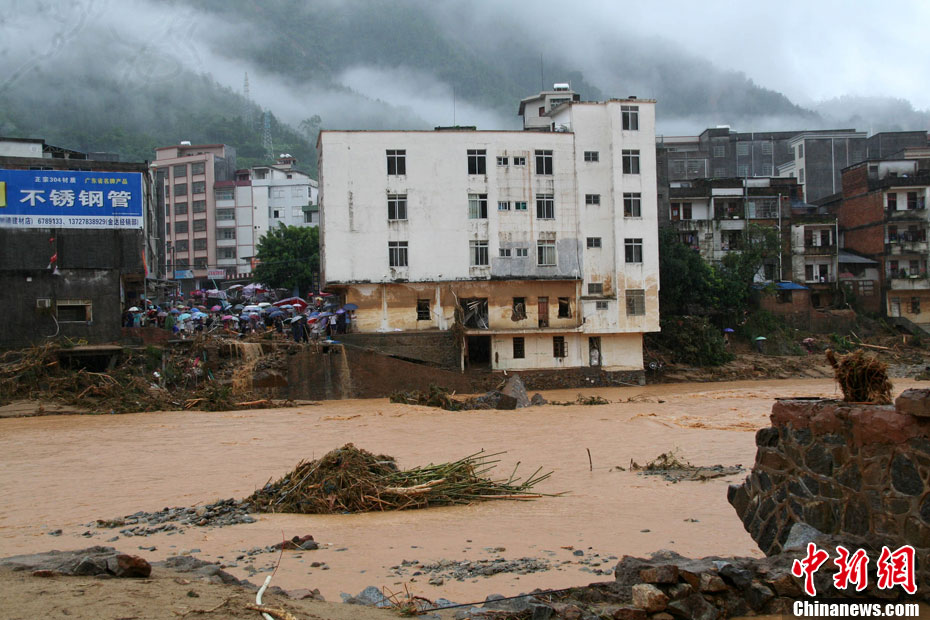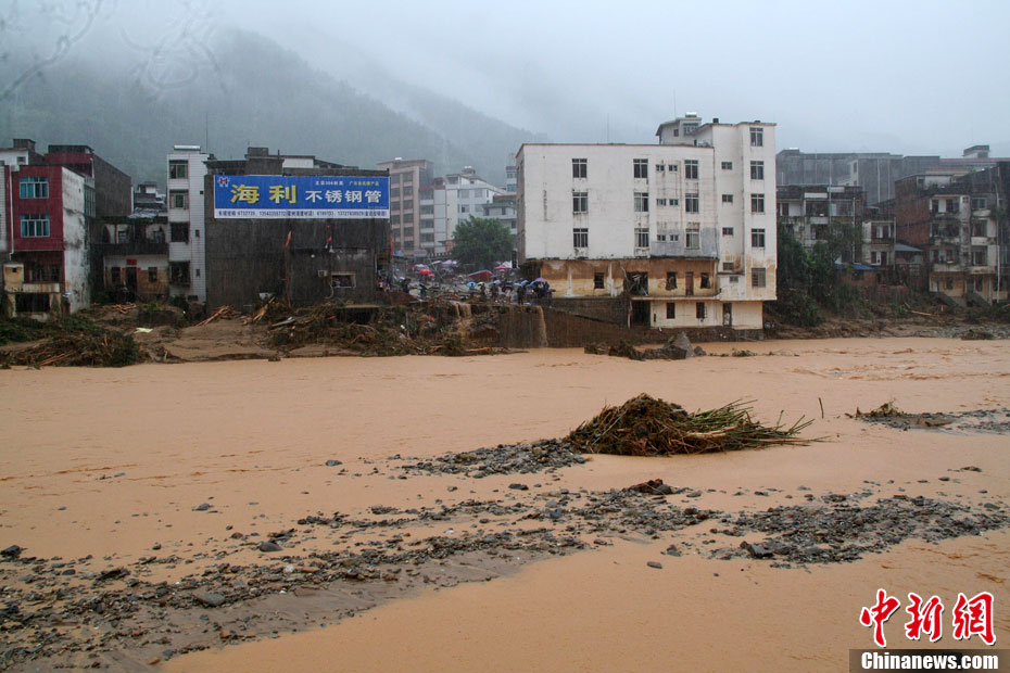 9月23日晚,廣東茂名市三防部門(mén)稱(chēng),受“9·21”特大暴雨引發(fā)山洪災(zāi)害影響,當(dāng)?shù)匾驗(yàn)?zāi)停產(chǎn)工礦企業(yè)達(dá)176家,其中以水電站為主,還包括木業(yè)加工廠(chǎng)、選礦廠(chǎng)等。圖為災(zāi)害現(xiàn)場(chǎng)。中新社記者 梁盛 攝