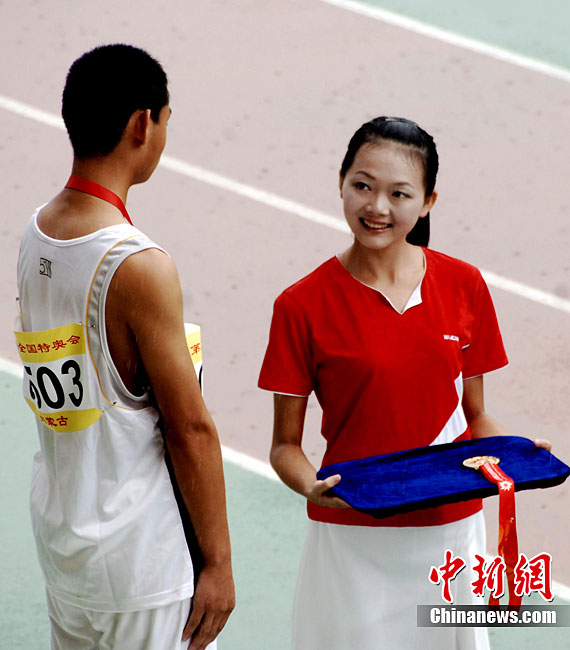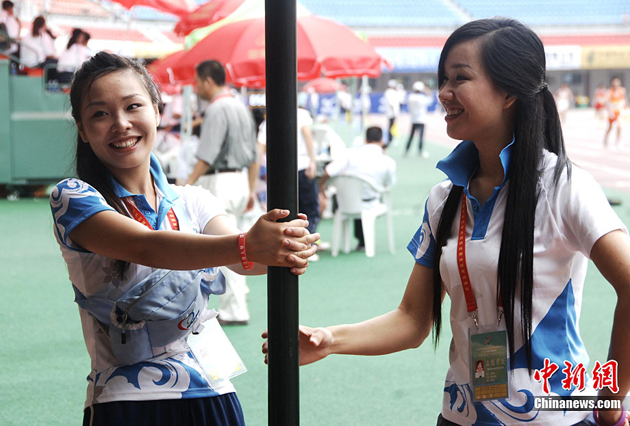 9月19日至25日,中國(guó)第五屆特奧會(huì)在福州舉行,賽場(chǎng)外美麗的志愿者成為一道亮麗風(fēng)景線。王東明 攝