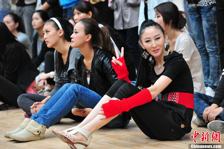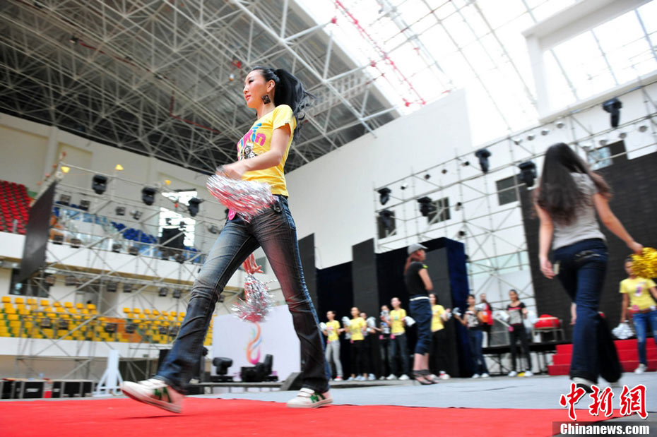 9月25日,40名佳麗選手云集四川省劍閣縣體育館,為即將到來(lái)的2010中華旅游小姐大賽中國(guó)區(qū)總決賽晚會(huì)進(jìn)行彩排。為了一個(gè)小時(shí)的時(shí)尚秀,選手們需要參加兩天共10幾個(gè)小時(shí)的高強(qiáng)度彩排,大部分的時(shí)間她們?cè)凇澳V浮钡闹笇?dǎo)下站立、走臺(tái)、或者是緊張的換衣。然而,猶如T臺(tái)上的絢麗一樣,她們的后臺(tái)同樣精彩。中新社記者 李學(xué)仕 攝