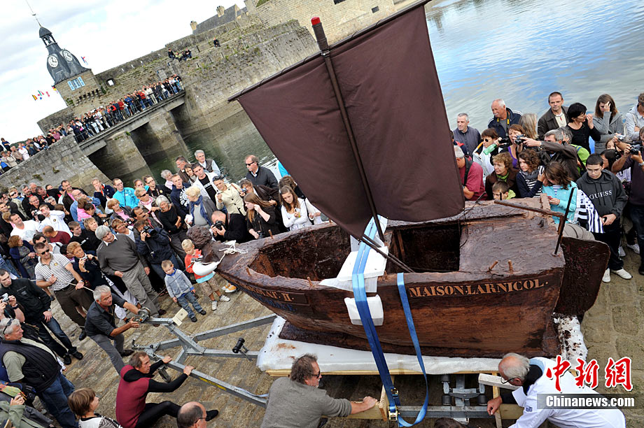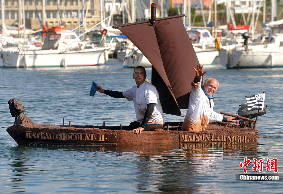 當地時間9月25日,一艘用巧克力和冰糖制造的帆船在法國西北菲尼斯泰爾省的孔卡諾港下海試水,吸引不少居民和游客觀看。這艘巧克力帆船長3.5米、重1.2噸,由法國名匠設計。帆船的龍骨全部使用冰糖搭建,除風帆和發(fā)動機外,其他部分則使用巧克力做材料。當天,這只巧克力帆船載著制造者和一名乘客成功駛離孔卡諾港,在海上巡航數圈后安全返回,現場觀眾彩聲一片。